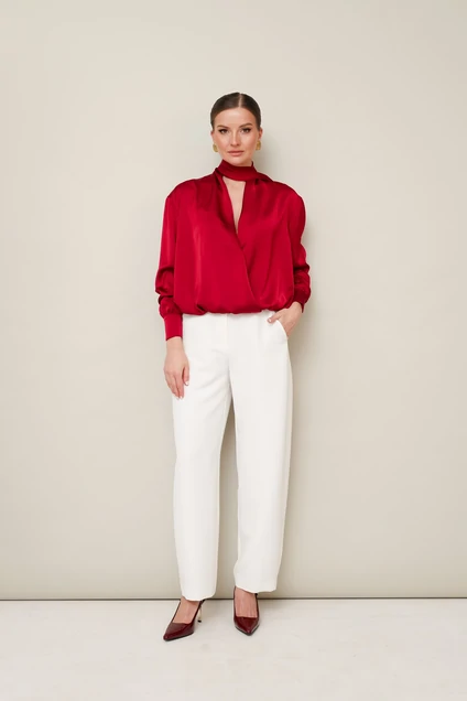 Блузка 11-491 Pur Pur — это яркий элемент женского гардероба. Коллекция бренда Pur Pur выполнена из качественного полиэстера, который обеспечивает комфорт и долговечность изделия. Блузка прямого кроя с V-образным вырезом на запах и спущенной линией плеча подчеркивает женственность и стиль. Манжеты снабжены застежкой на петлю и пуговицу, что добавляет изысканности. Съемный шарф — это практичный аксессуар, который можно использовать для создания разнообразных образов. Блузка обработана резинкой по низу, что позволяет регулировать посадку. Яркий красный цвет акцентирует внимание, делая блузку подходящей для любых особых случаев и повседневных выходов в демисезон. Эта вещь станет идеальным выбором для тех, кто ценит стиль и комфорт.
