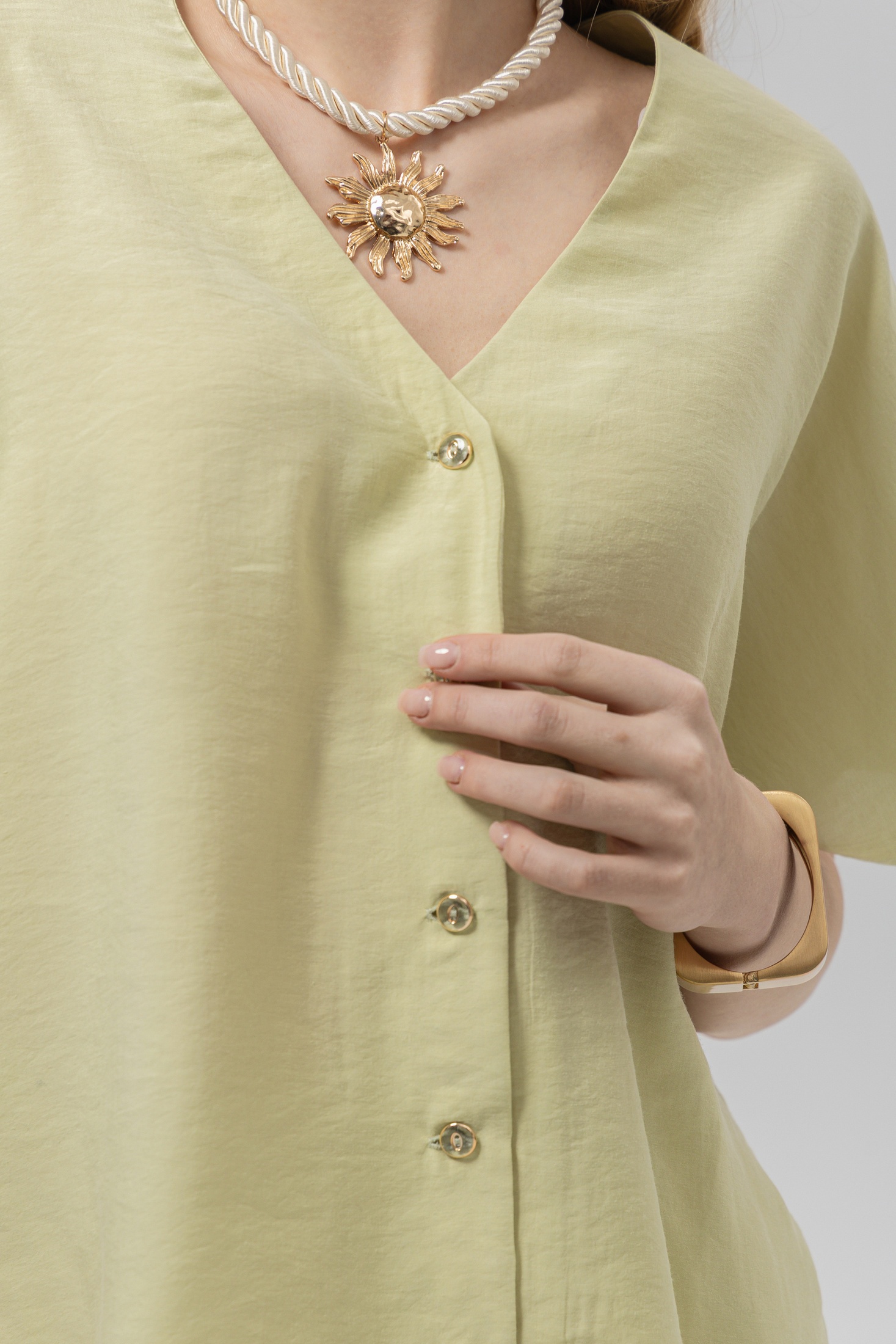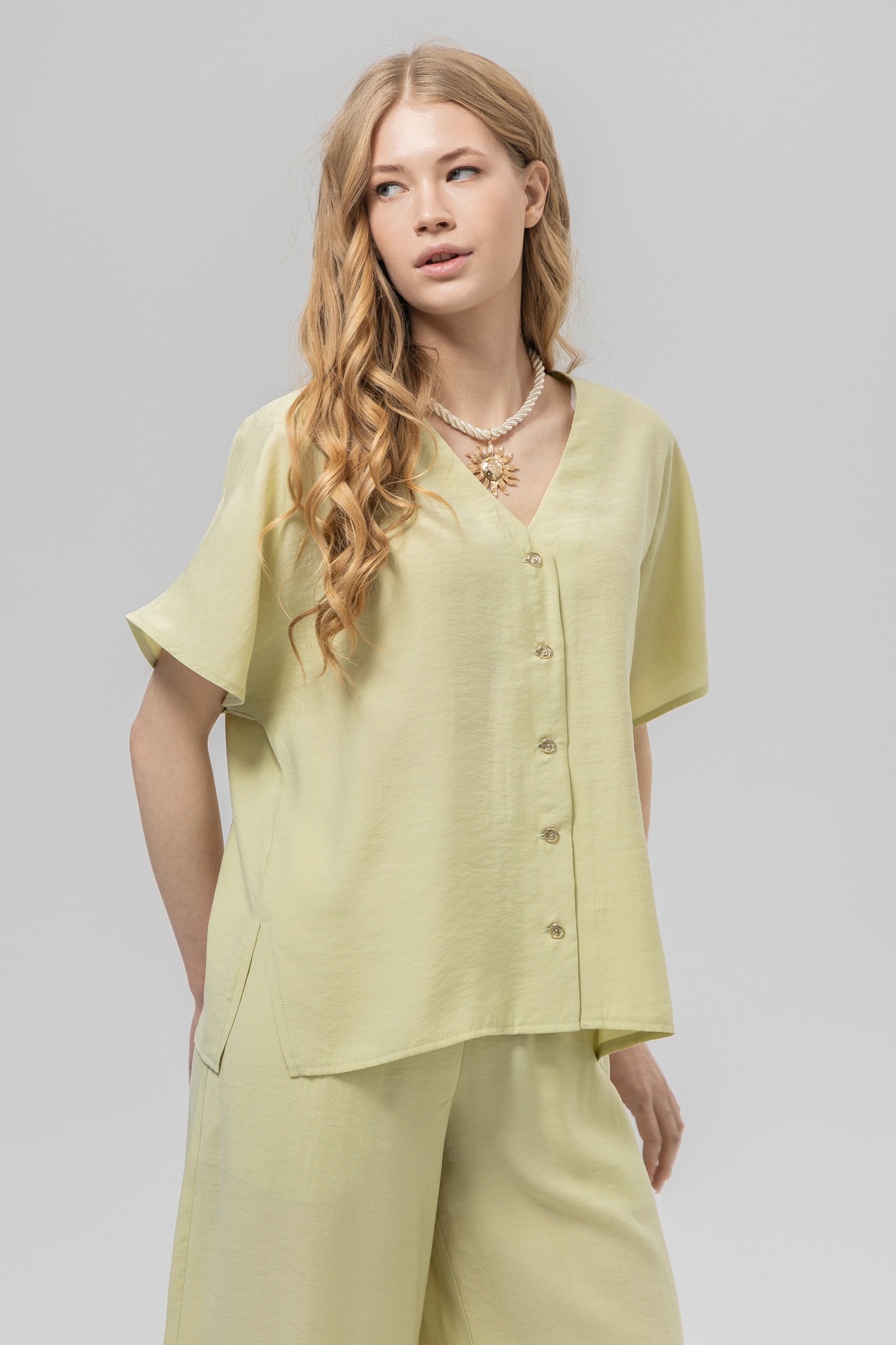 Блузка РТ0133-ВИ4 светло-оливковый Romgil — это идеальное сочетание стиля и комфорта. Коллекция бренда Romgil представлена мягкой и дышащей тканью, содержащей 85% вискозы и 15% полиэстера. Блузка свободного кроя с короткими рукавами и V-образным вырезом подчеркивает вашу индивидуальность и обеспечивает комфорт на каждый день. Легкий материал создает ощущение воздушности, что делает её идеальной для весенне-летнего сезона. Светло-оливковый цвет гармонично впишется в любой гардероб, а фасон отлично подойдет для повседневных и офисных образов. Она будет прекрасно сочетаться с брюками, юбками и шортами, придавая вам уверенности и легкости.