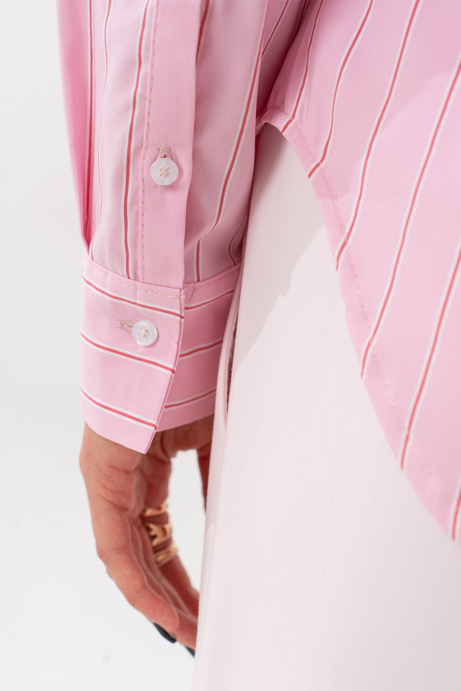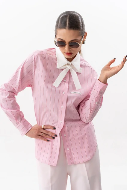 Блузка 7636 розовая полоска SILVERSPICE от коллекции бренда SILVERSPICE превосходно сочетается с современным гардеробом. Выполненная из хлопка с добавлением полиэстера и эластана, она дарит комфорт и свободу движения. Актуальный крой с отрезной кокеткой и втачным рукавом с манжетой на пуговице придаёт модели стильную элегантность. Воротник стояче-отложной и съёмный бант из однотонной ткани добавляют утончённости. Фигурный низ и декоративная бирка на полочке делают блузку уникальной. Длина по центру спинки составляет 69 см, а длина рукава — 61 см, что делает её идеальной для офисного стиля в любое время года. Разноцветная полоска в розовых тонах подчёркивает свежесть и актуальность дизайна.