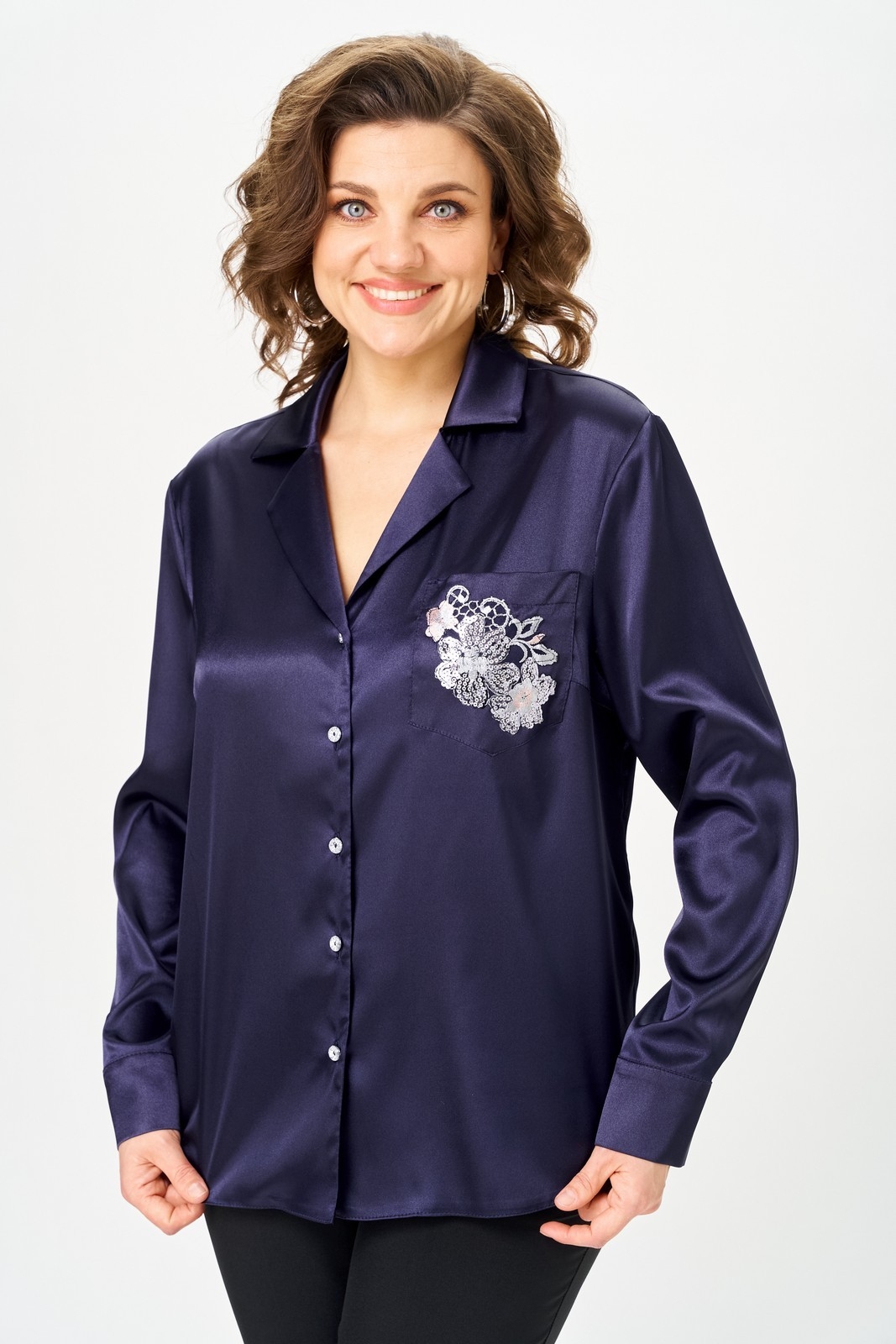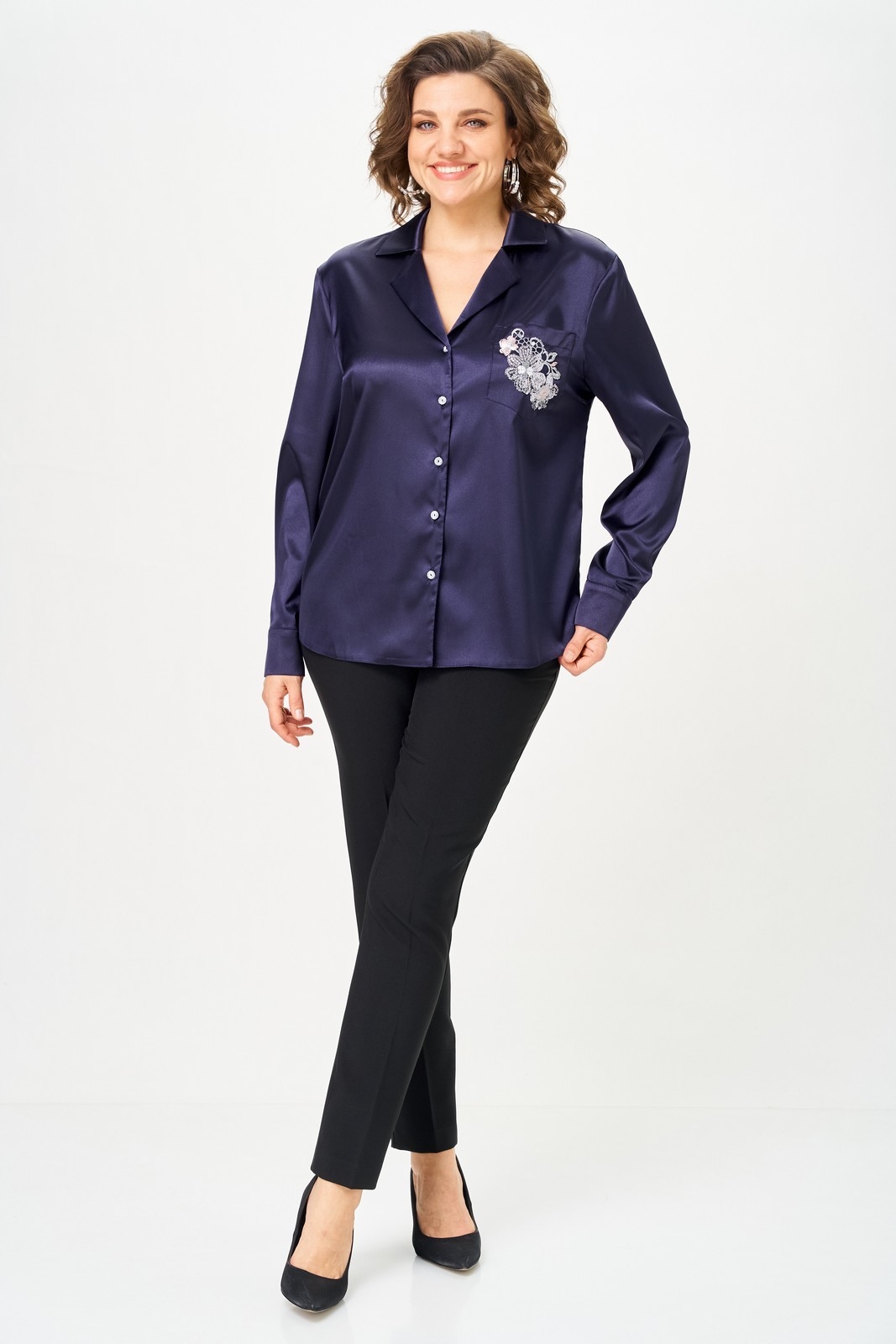 Блузка 2168 черничный Svetlana Style идеально подойдет для вашего гардероба. Коллекция бренда Svetlana Style предлагает стильную блузку из хлопковой ткани в сочетании с полиэстером и эластаном, обеспечивая комфорт и свободу движений. Прямой силуэт с втачным длинным рукавом и фигурной линией низа придает модели современный вид. Воротник с лацканами и центральная застежка на пуговицах создают элегантный образ. Особое внимание привлекают вытачки по линии груди и накладной карман с оригинальной отделкой. Черничный цвет добавляет изысканности и подойдет для осенне-весеннего сезона. Длина блузки по спинке составляет 65 см, а длина рукава от горловины — 75 см, что делает ее идеальной для офисного стиля и повседневного использования.