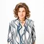 Блузка женская свободного силуэта с центральной застёжкой на петли и декоративные пуговицы, выполнена из льняной ткани с добавлением вискозы. Полочка с нагрудными вытачками. Спинка с отрезной кокеткой и бантовой складкой.
