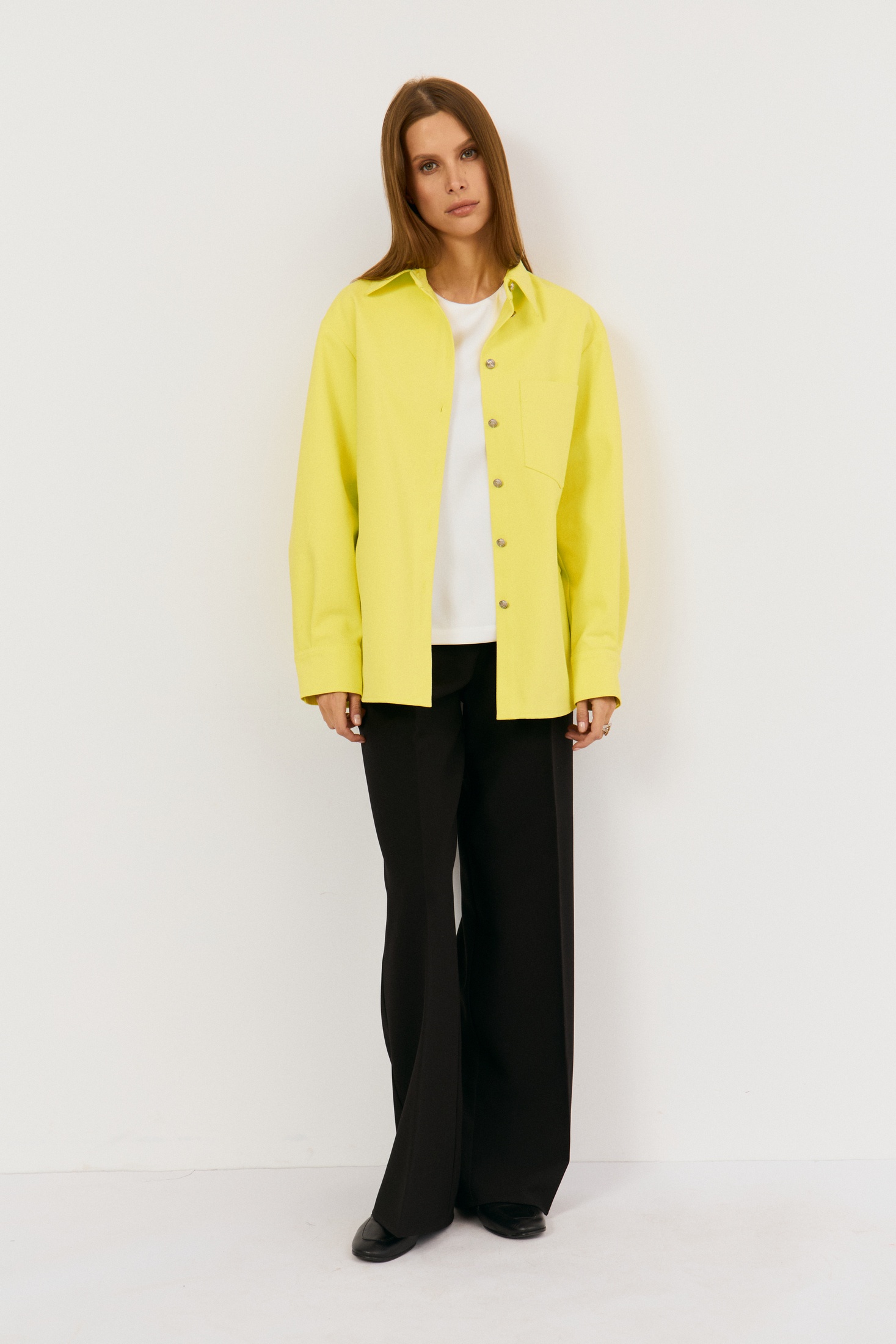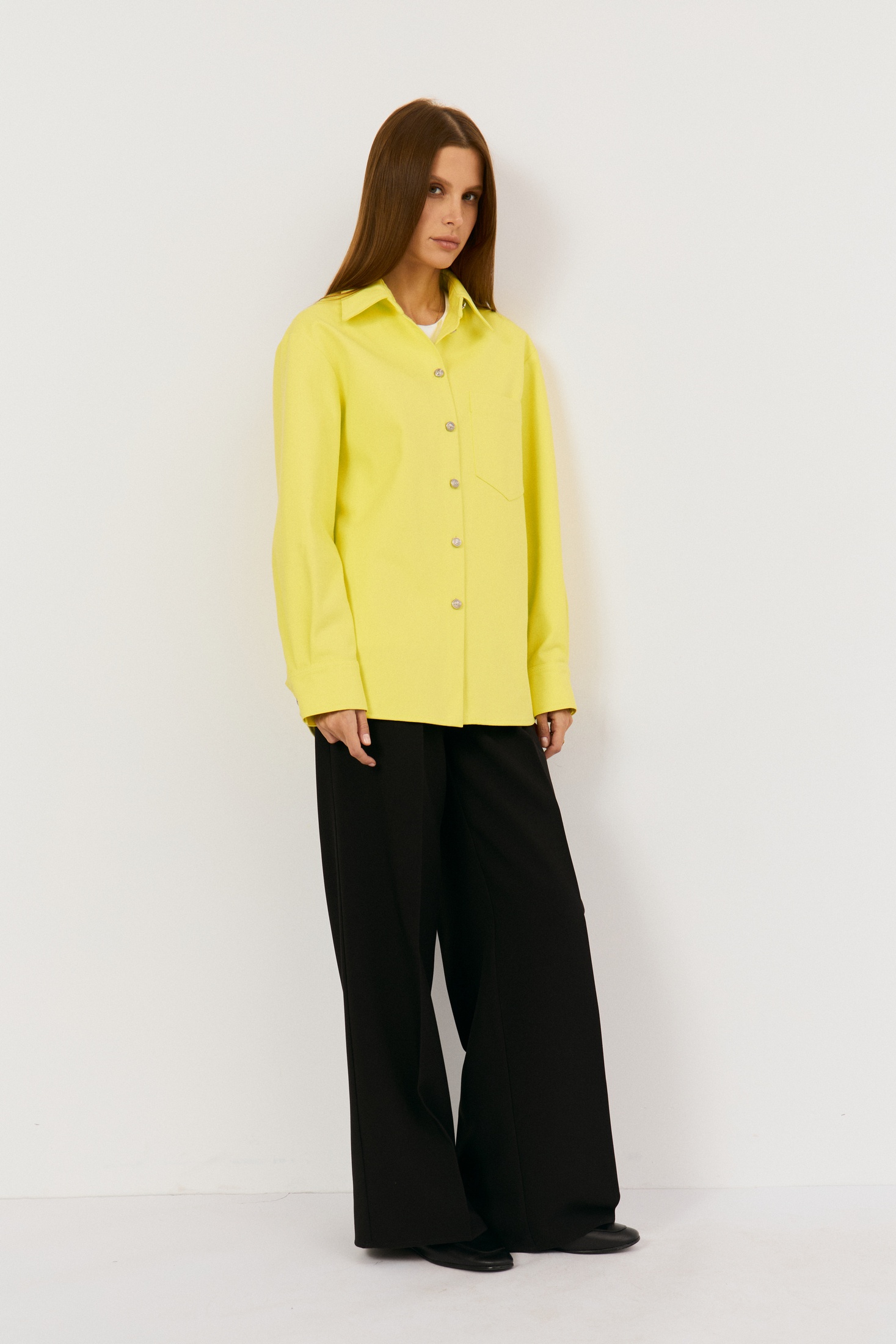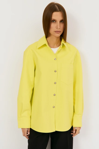 Блузка 2504 лимон The name - стильное и практичное решение для вашего гардероба. Коллекция бренда The name предлагает блузку, выполненную из джинсовой хлопковой ткани, что гарантирует комфорт и удобство в носке. Яркий лимонный цвет добавит свежести в любой образ. Свободный крой и классический воротник делают ее идеальной для повседневного и офисного стиля. Застежка на пуговицах и накладной карман на груди добавляют функциональности. Длинный рукав, присобранный на манжету с пуговицей, придает утонченный вид, а отрезная кокетка со спинки и фигурный край завершают дизайн. Длина по спинке составляет 73 см, что делает блузку удобной и универсальной для сочетания с различными видами одежды — от классических брюк до джинсов, юбок и шорт.