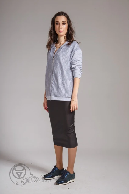 спортивный трикотажный бомбер с наложением гипюра в тон на спинку и полочку. Без подкладки. Длина на рост 164-58, на рост 170-63, длина рукава от горловины на рост 164-64, 170-68.