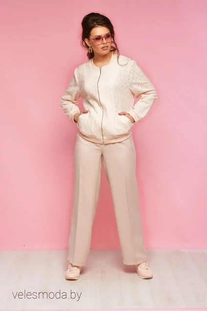 Категория: Бомбер кружево сезон: Весна цвета: Светло розовый. ткань: Хлопок, не тянется. Замеры для (46) размера. Длина по спинке: 59 см. Длина рукава: 57 см. Рукав: Длинный Силуэт: Полу прилегающий Статус: Повседневная. Два рабочих кармана. Застежка молния.