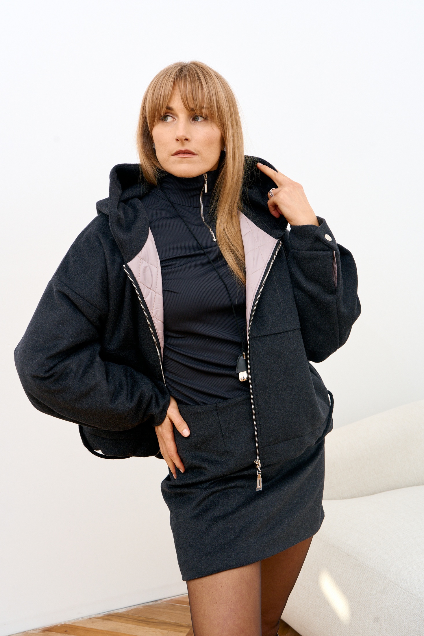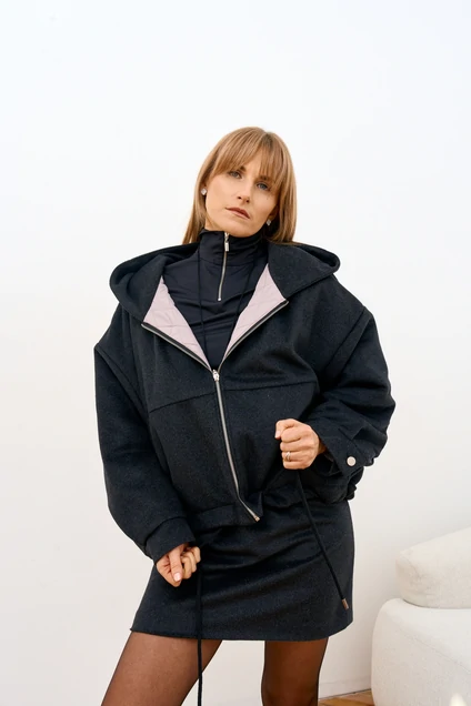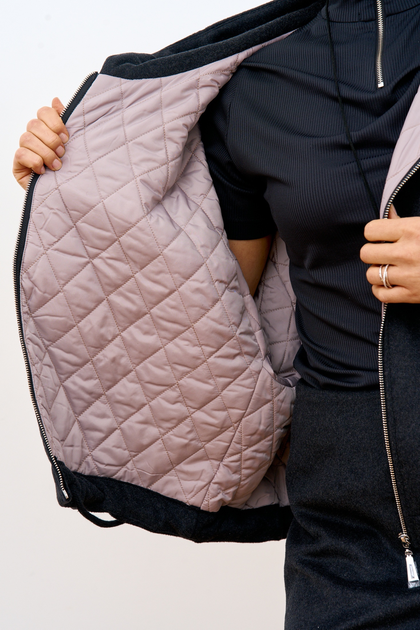 Бомбер 24121 FAMA от коллекции бренда FAMA — это стильный выбор для прохладной погоды. Выполненный из плотной шерстяной ткани с добавлением полиэстера и вискозы, этот бомбер имеет утеплённую подкладку, обеспечивая комфорт и тепло. Модель удлиненного покроя оснащена капюшоном и имеет застежку на металлической молнии, а также регулируемую кулиску по низу, что позволяет изменять силуэт. Черный цвет делает бомбер универсальным, подходящим для городских образов. Это идеальный вариант для демисезонного гардероба, который подчеркивает индивидуальность. Длина изделия составляет 66 см, что обеспечивает комфортное ношение и стильный внешний вид.