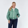 Женская куртка-бомбер свободного силуэта с застежкой на кнопки. Выполнена из плотной джинсовой ткани. По переду расположеныы прорезные карманы с листочкой. Горловина с втачной стойкой из трикотажного полотна. По низу куртки и по низу рукавов притачная планка и манжеты из трикотажного полотна. Бомбер на подкладке (100% хлопок). Длина по спинке 59 см (р.52-54), 61см (р.56-60). Длина по переду от плечевого шва 66см (р.52-54), 68см (р.56-60). Длина рукава с учетом манжеты 60см.