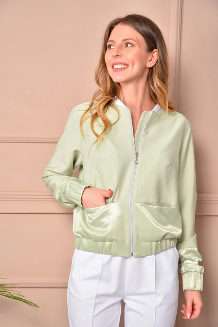Шикарная модель куртки-бомбера на предстоящий сезон представлена в атласном решении. Сочетание матовой и гладкой фактуры в спортивном образе позволяет создавать с бомбером чудесные сеты. Летний бомбер на подкладке свободного силуэта. Перед с нагрудными вытачками и центральной застежкой на разъёмную тесьму-молнию. Функциональные карманы в шве. Рукава длинные втачные одношовные, с отрезной манжетой.