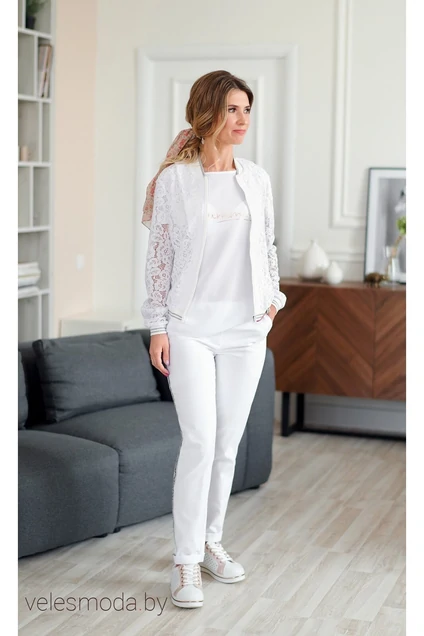 Бомбер из кружева, без подкладки, лёгкий и удобный. Универсальный стиль такого бомбера отлично сочетается с брюками и платьями как спортивного, так и классического стиля. Застёжка бомбера - спереди на молнию. Низ, рукава и горловина бомбера выполнены из плотного довяза.