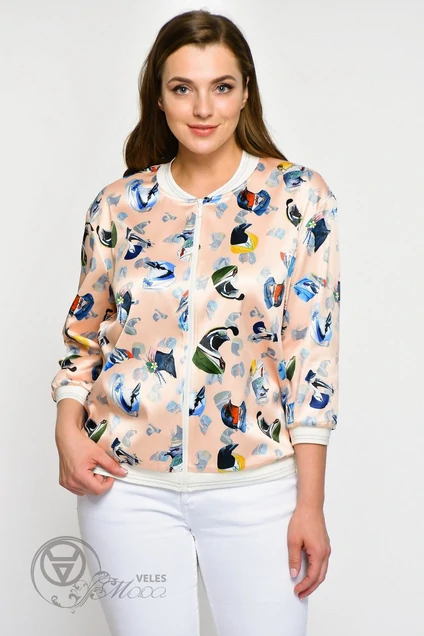 Невероятно стильный бомбер. Этот мотив стал одним из ключевых в весенней-летней коллекции 2018 года. Застежка на молнии, рукав 3/4. Длина по спинке 67 см, длина рукава 48 см. Без подкладки .