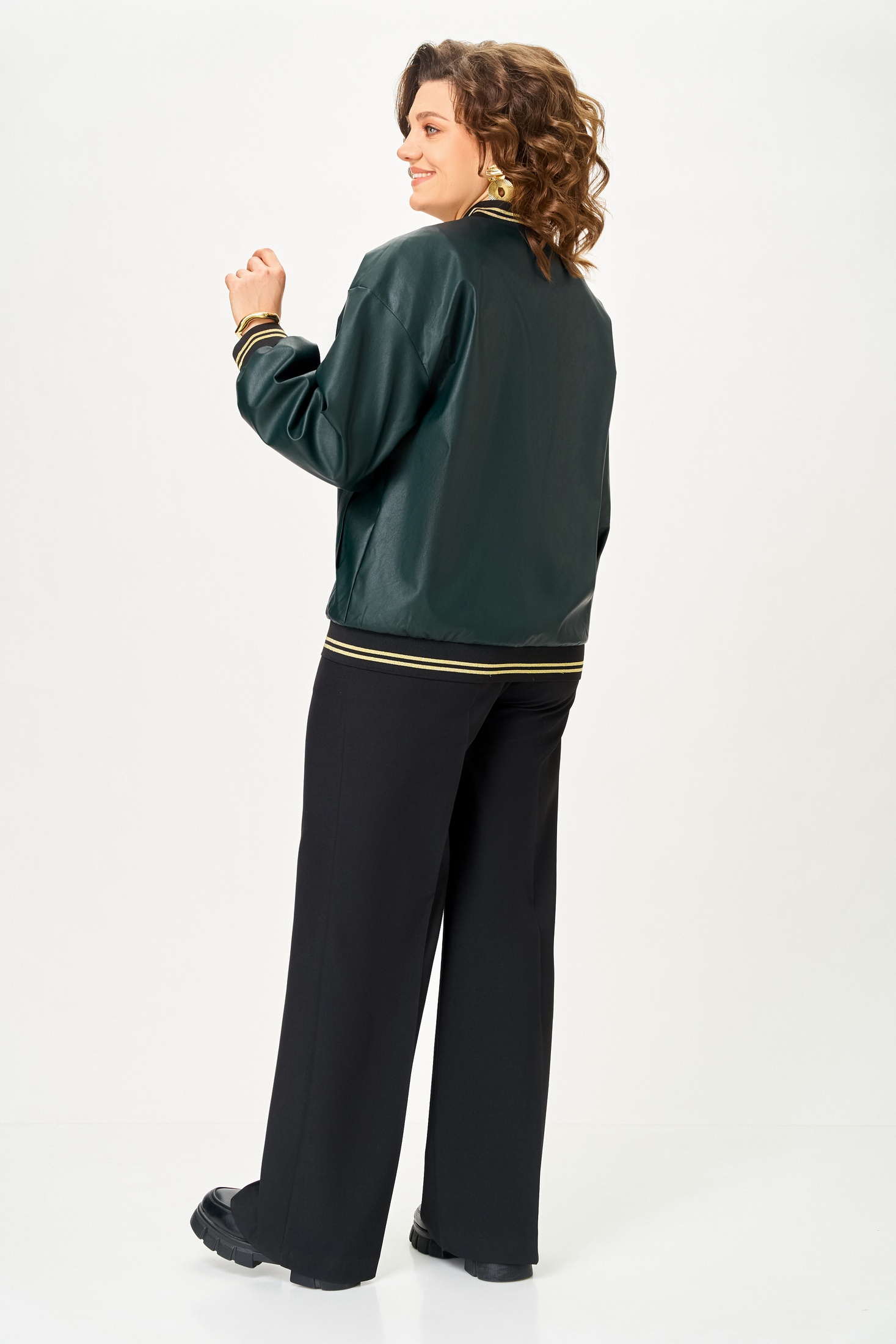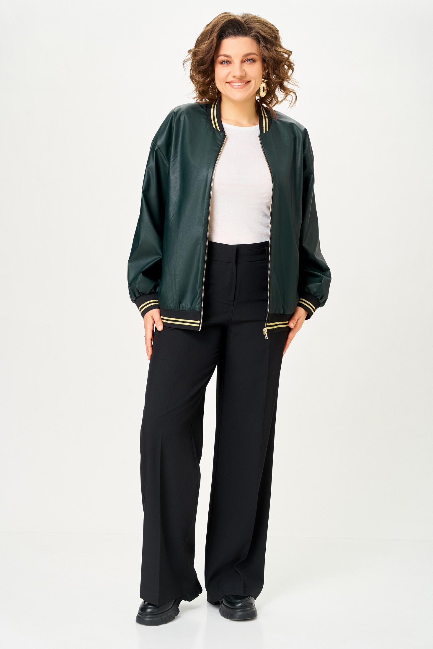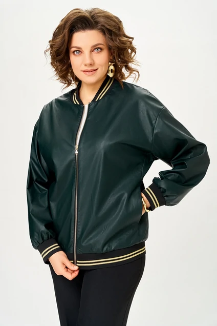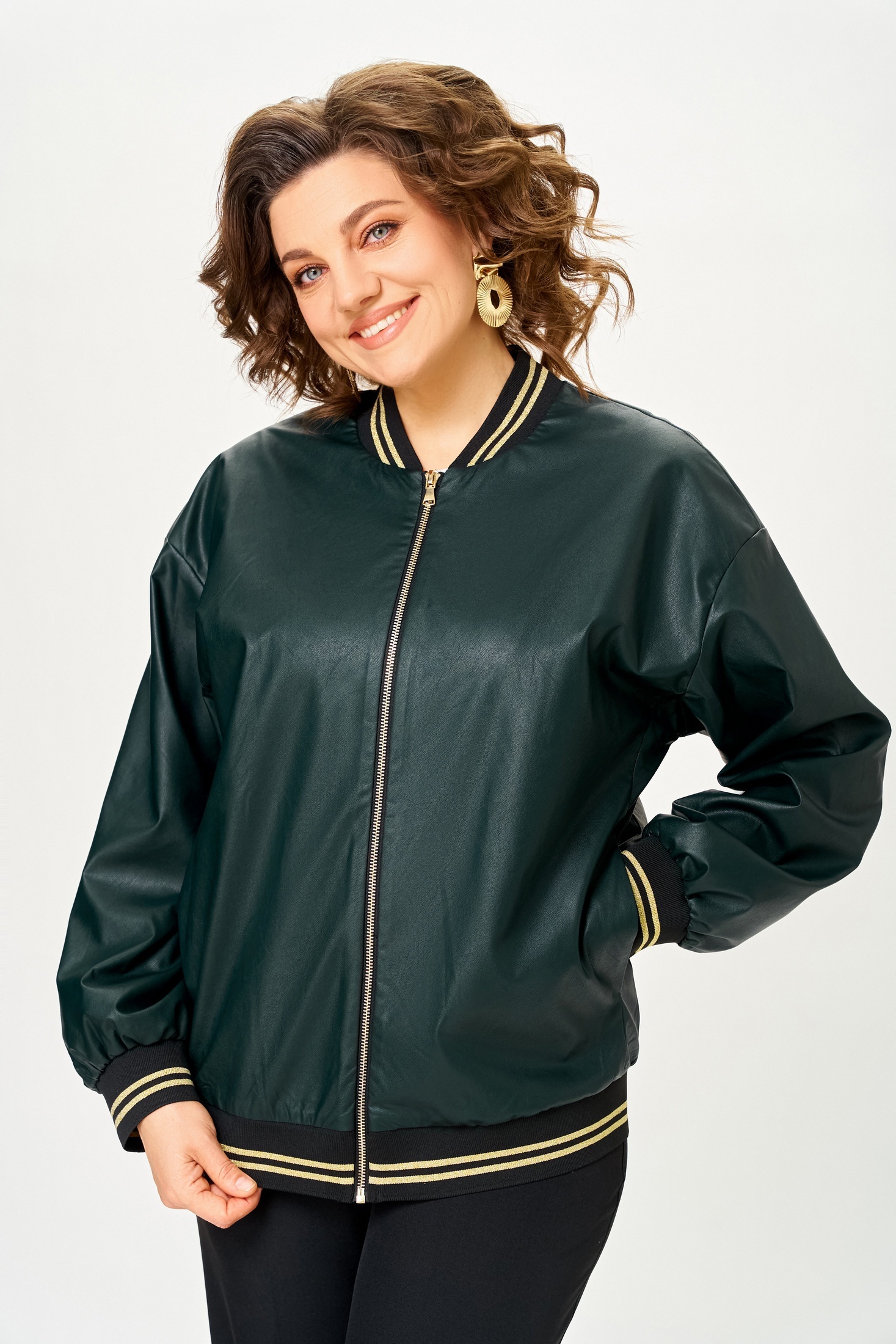 Бомбер 867-1 Swallow от коллекции бренда Swallow выполнен из мягкой экокожи. Он имеет свободный крой со спущенной линией плеча, декоративную металлическую молнию и отрезные бочки с карманами в швах. Округлая горловина украшена трикотажной стойкой, а длинные рукава и низ изделия дополнены довязом. Бомбер подходит для демисезонного гардероба и станет стильным дополнением к повседневному образу. Изделие представлено в глубоком зелёном цвете, с длиной по спинке 65 см, делая его универсальным для различных стилей и настроений.