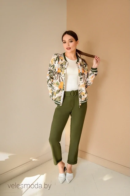 дл. бомбера 55 см, дл. рукава 61 см Стильный бомбер с модным принтом на ткани. Бомбер без подкладки, с центральной застежкой на тесьму-молнию.