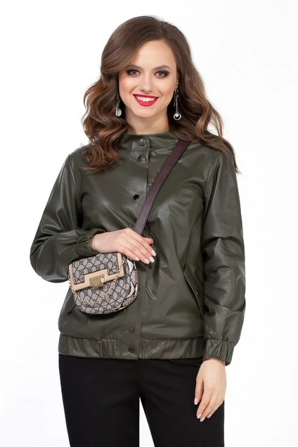 Бомбер из эко кожи. С мягким поясом-резинкой по низу и низу рукава. Рукав втачной длинный. Воротник-стойка. По переду боковые карманы с клапанами. Застежка на кнопки. Бомбер на подкладке.