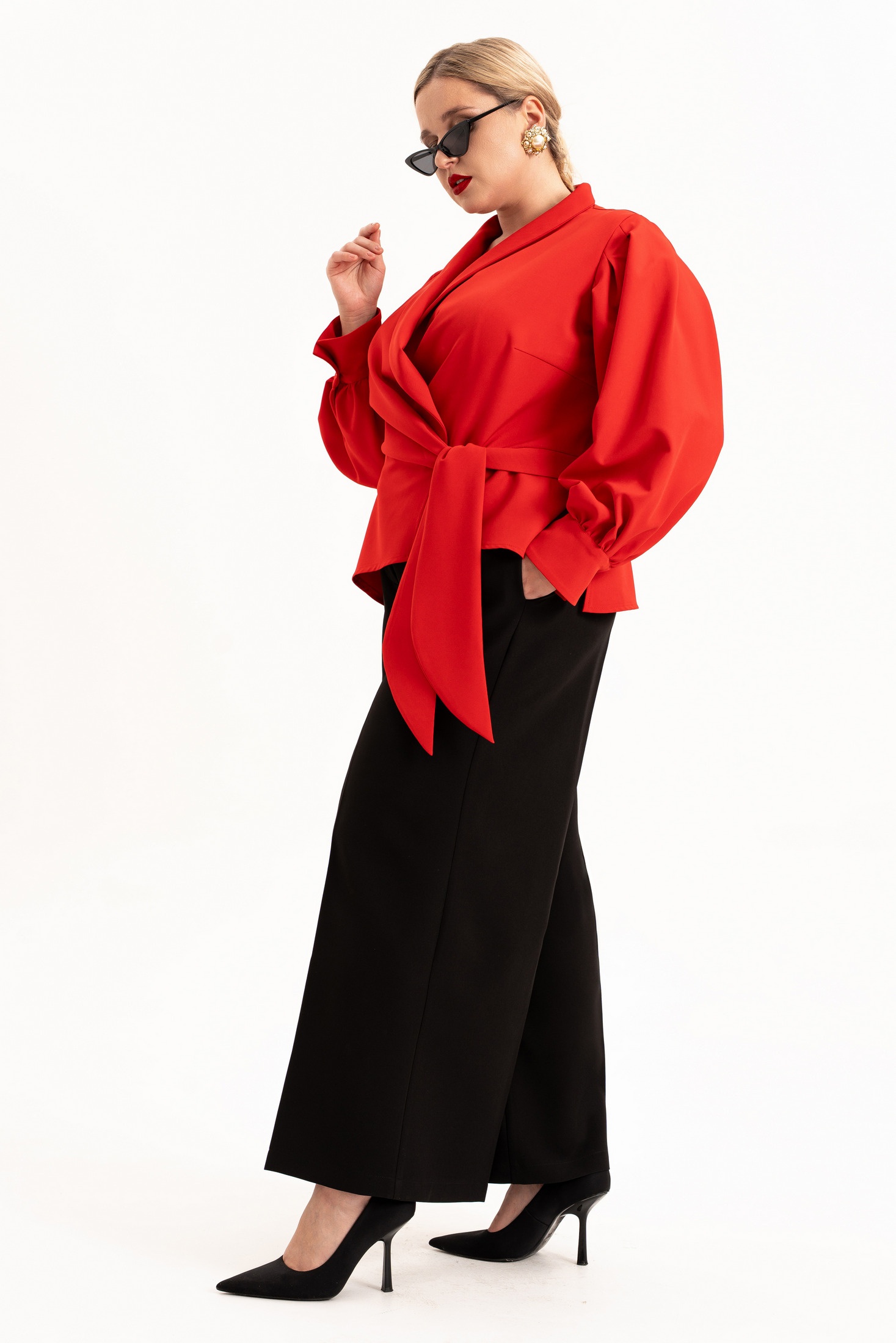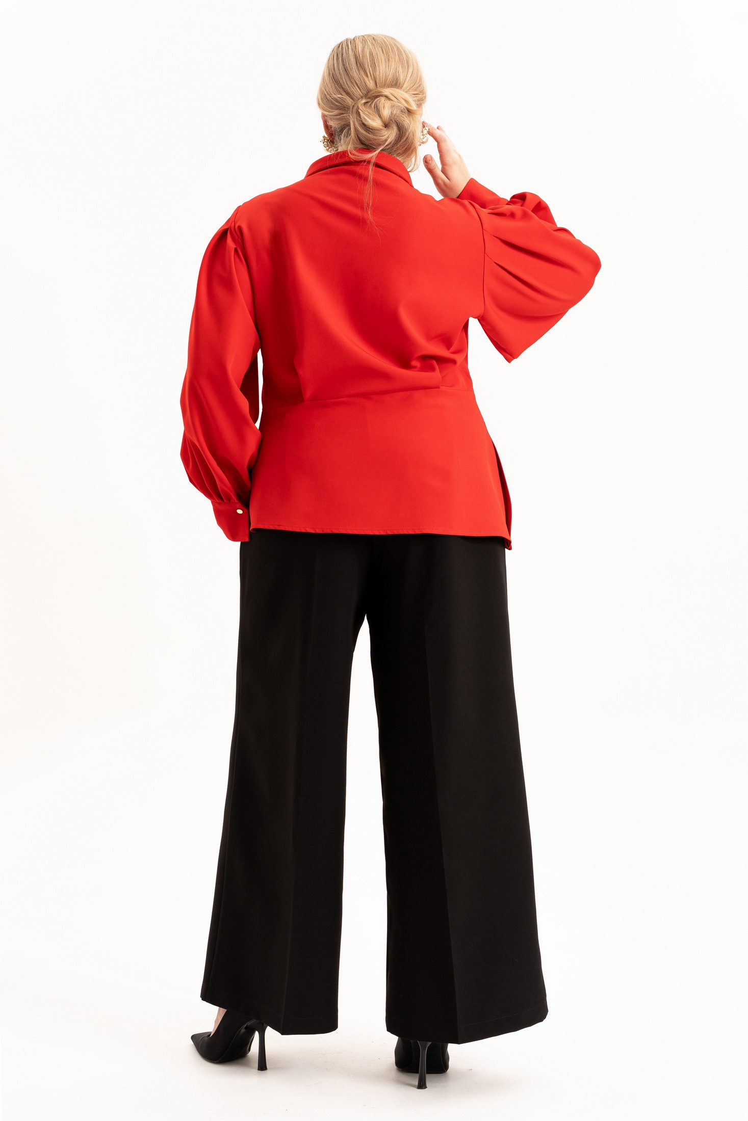 Практичные и функциональные брюки гармонично сочетают комфорт и современный стиль. Незаменимый элемент гардероба для тех, кто ценит удобство в сочетании с актуальным дизайном. Брюки с широкими штанинами палаццо выгодно подчеркивают женственные формы, а свободный крой обеспечивает удобство в любой ситуации. На брюках обработаны карманы в боковых швах, по талии пояс с застежкой на молнию и частично на резинке. Благодаря использованию высококачественных материалов, они обладают отличной плотностью фактуры, обеспечивая удобство и долговечность. Высокая посадка добавляет элегантности и стройности фигуре, а прямая модель идеально подходит для женщин с любым типом фигуры, а также высокого и низкого роста. Благодаря наличию резинки на талии обеспечивают идеальный силуэт и удобство при носке. Классическая модель для полных леди и девушек плюс сайз. Отличное решение для всех кто ищет стильные базовые брюки большого размера. Длина рукава (см): 62 Длина блузы (см): 67