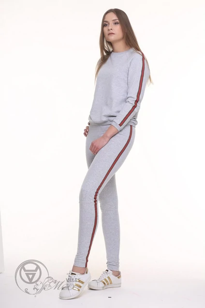 серые спортивные легинсы с трендовой тесьмой красно-зелёного цвета. Дл 164-100, 170-106см.