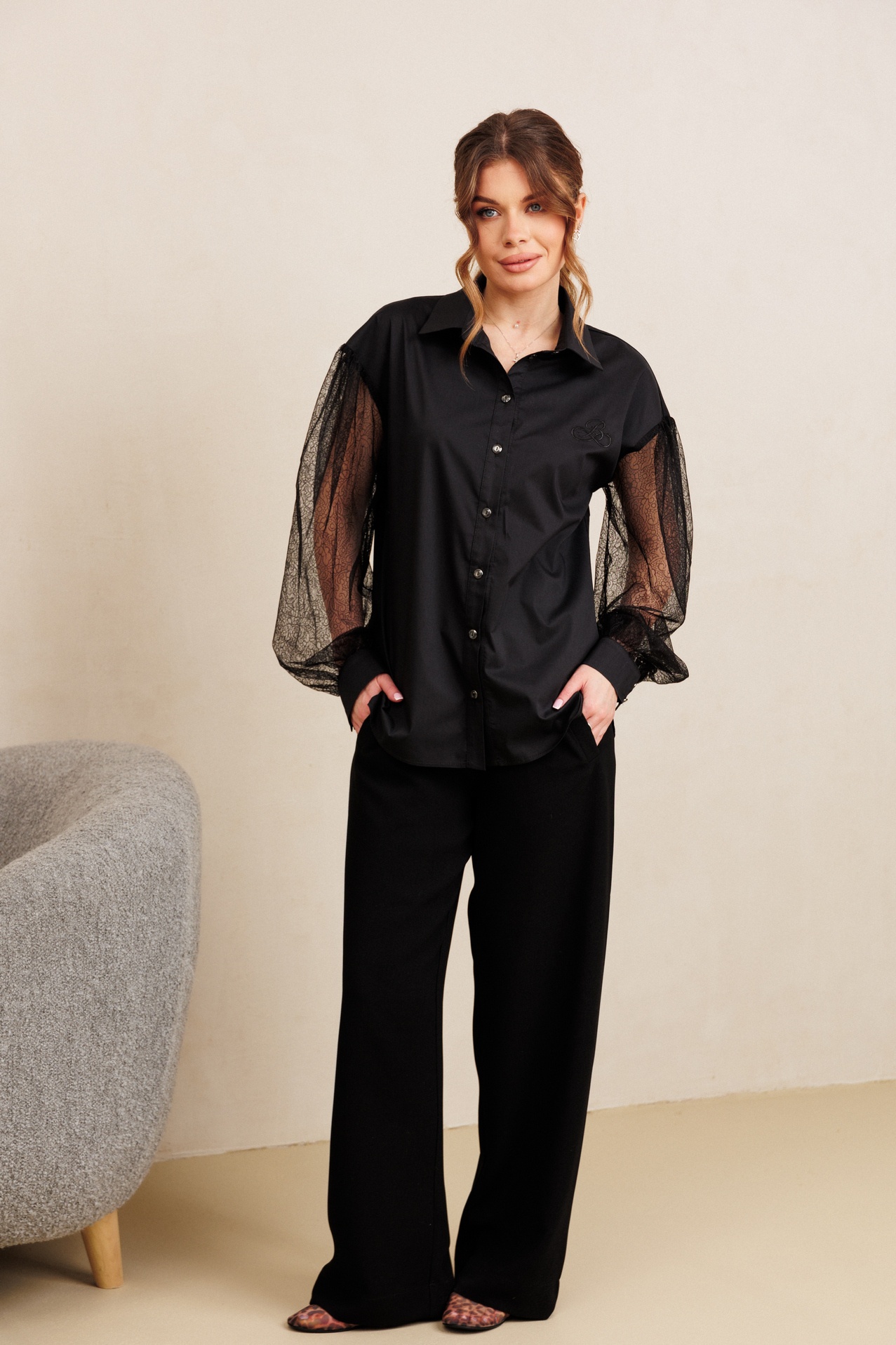 Брюки 5303 черный Amori — это идеальный выбор для стильного образа. Коллекция бренда Amori предлагает широкие струящиеся брюки с резинкой по талии и боковыми карманами, выполненные из сочетания полиэстера, вискозы и эластана. Эти брюки подходят для повседневного стиля и осенних прогулок. Чёрный цвет превосходно сочетается с различными топами и аксессуарами.