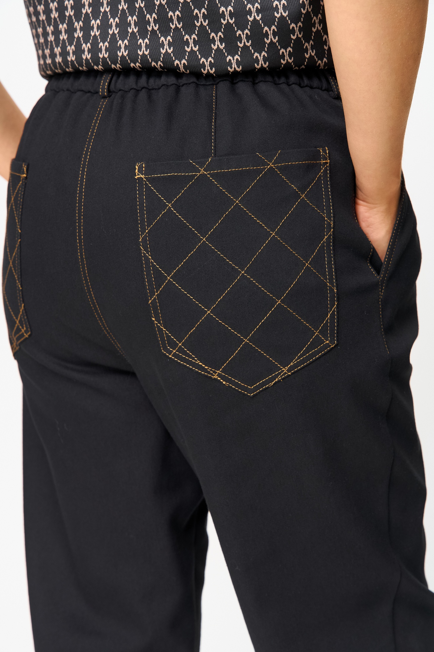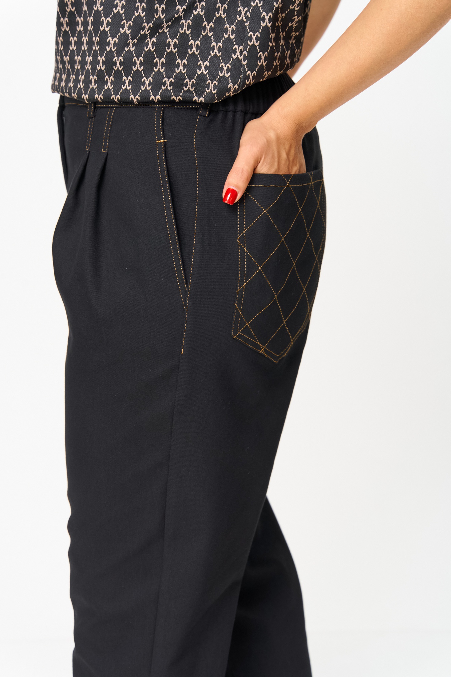 Джинсы мом с высокой посадкой - это идеальный выбор для женщин, ищущих комфорт и стиль в повседневной жизни, на работе. Брюки изготовлены из высококачественного смесового хлопка, обеспечивают идеальный баланс между удобством и прочностью. Модель с высокой посадкой, сзади с накладными карманами с отделкой и боковыми наклонными спереди. Вставки из экокожи с молниями по задним половинкам брюк внизу придают функциональности. Брюки на притачном поясе частично с резинкой.