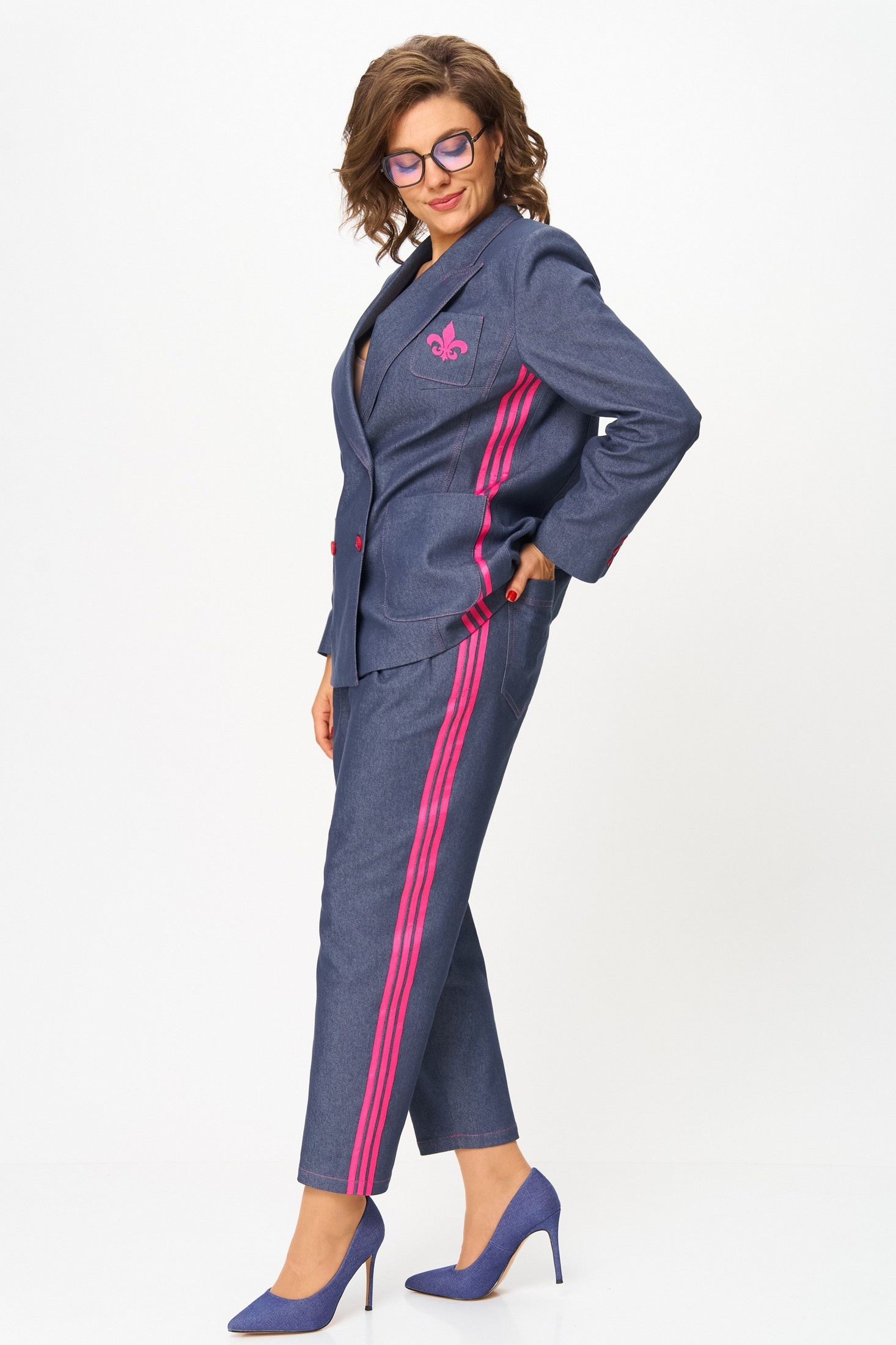 Джинсы мом с высокой посадкой - это идеальный выбор для женщин, ищущих комфорт и стиль в повседневной жизни, на работе. Брюки изготовлены из высококачественного смесового хлопка, обеспечивают идеальный баланс между удобством и прочностью. Модель с высокой посадкой, с накладными карманами сзади и боковыми наклонными спереди, с декоративной тесьмой по боковым швам. Брюки на притачном поясе частично с резинкой.