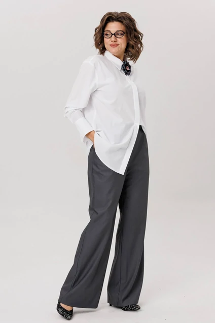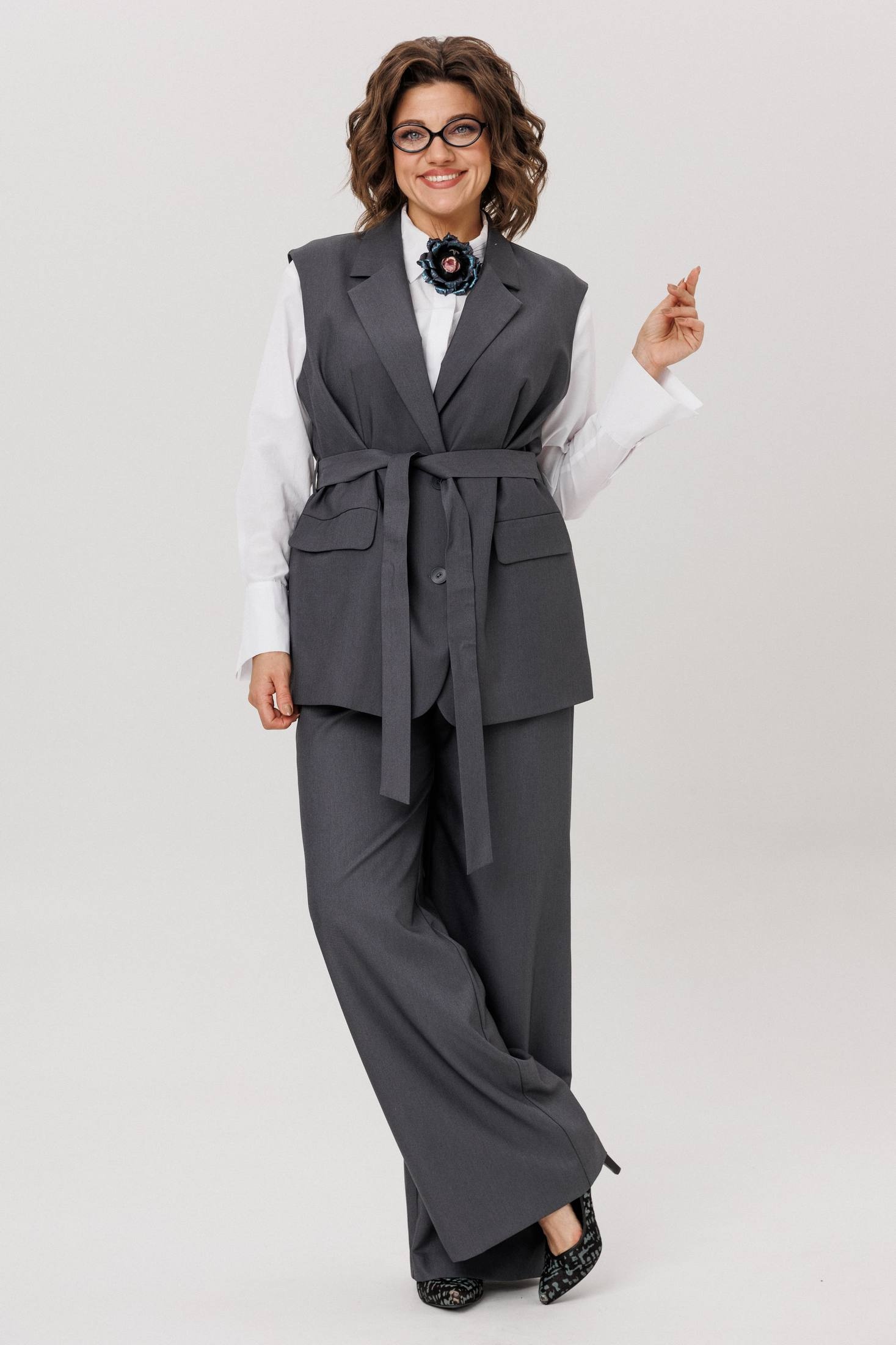 На модели в брюках цвета “пепельный вулкан” блуза 1203.1, жилет 1502. Также, можно собрать образ приобретая костюм 1501 (брюки и жилет).