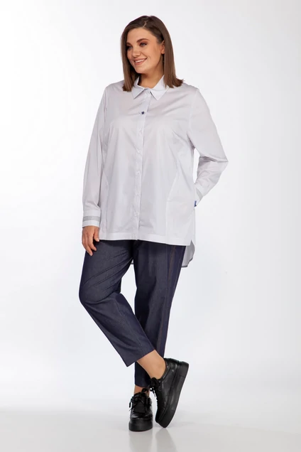 Брюки с высокой посадкой из хлопка с боковыми карманами, разрезами по низу и застежкой на молнию и пуговицу. Длина изделия - 94 см.