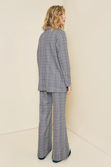 Элегантные клеш брюки с полуприлегающим силуэтом представлены в классическом стиле. Модель выполнена из ткани с принтом в мелкий клетчатый узор, сочетающим нежные оттенки серого и бежевого. Пояс на удобной эластичной тесьме обеспечивает идеальную посадку. Эти брюки идеально подойдут для создания стильного и современного образа. Обратите внимание, что на различных мониторах оттенок изделия может незначительно отличаться.