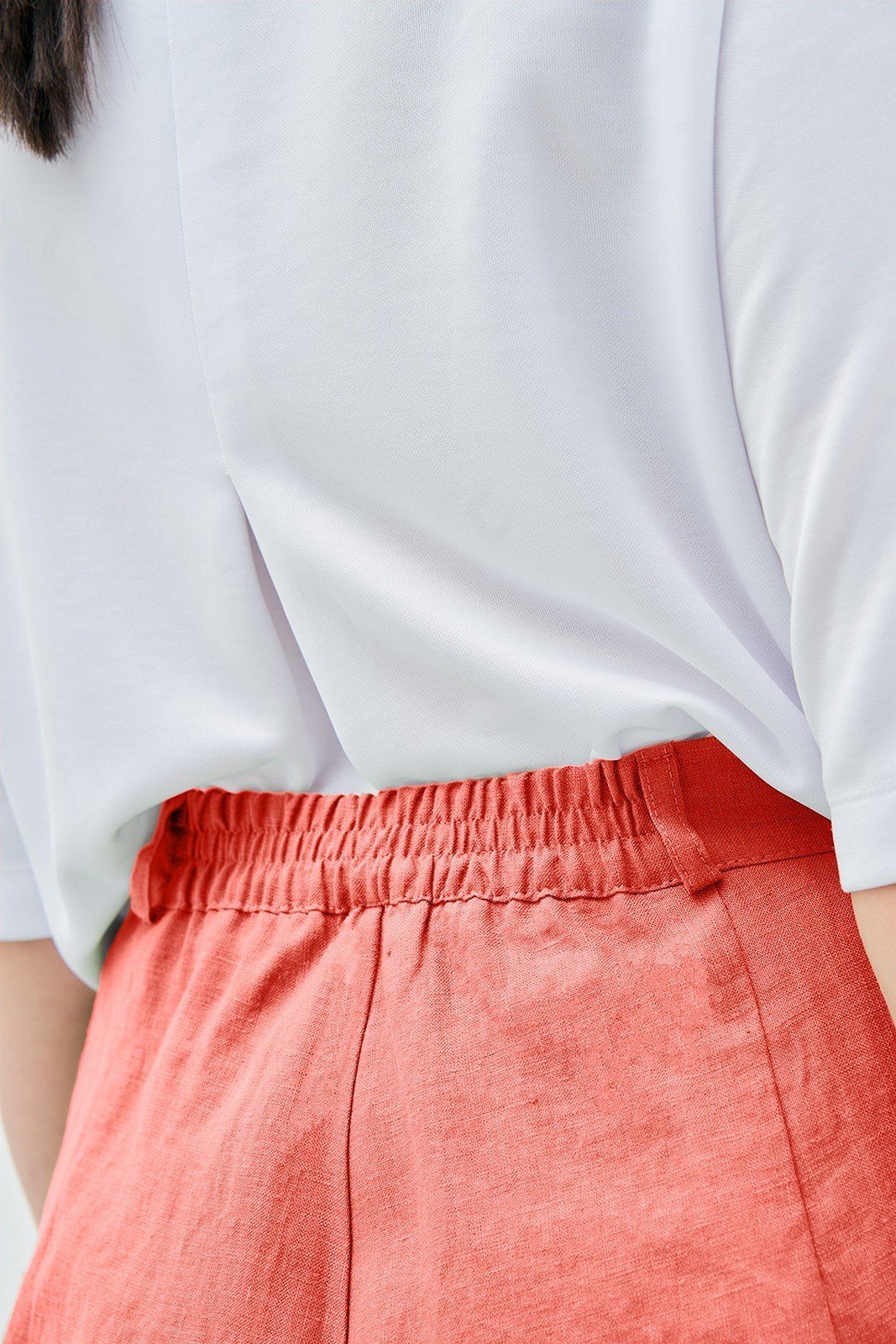 Прямые брюки из льна кораллового цвета добавят яркое и свежее настроение в ваш гардероб. Модель с высокой талией и свободным силуэтом идеально подчеркнет вашу фигуру, обеспечивая комфорт в течение всего дня. Эти универсальные брюки подходят как для создания деловых образов, так и для расслабленных повседневных ансамблей. Их универсальность и стиль делают их обязательной частью вашего гардероба.