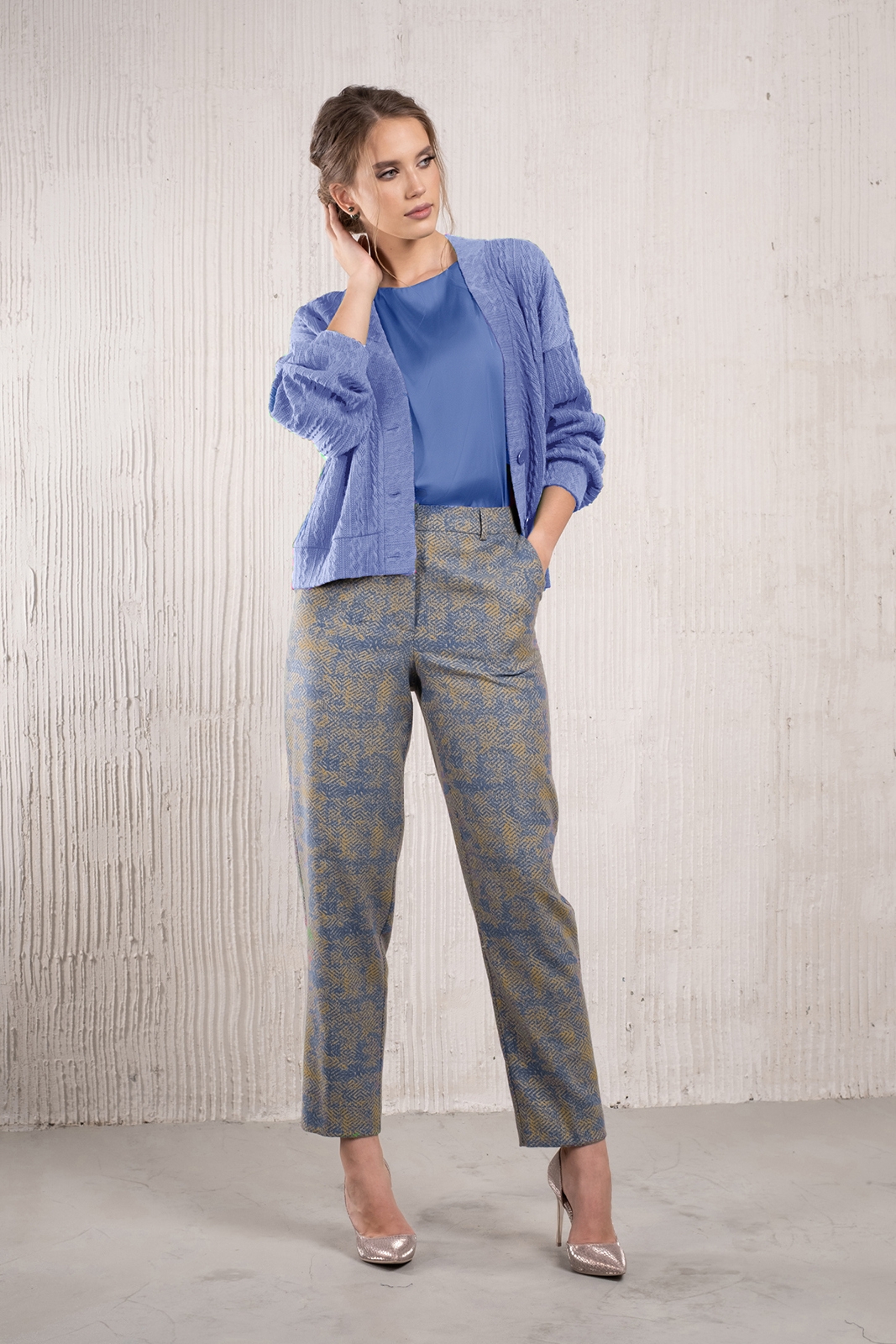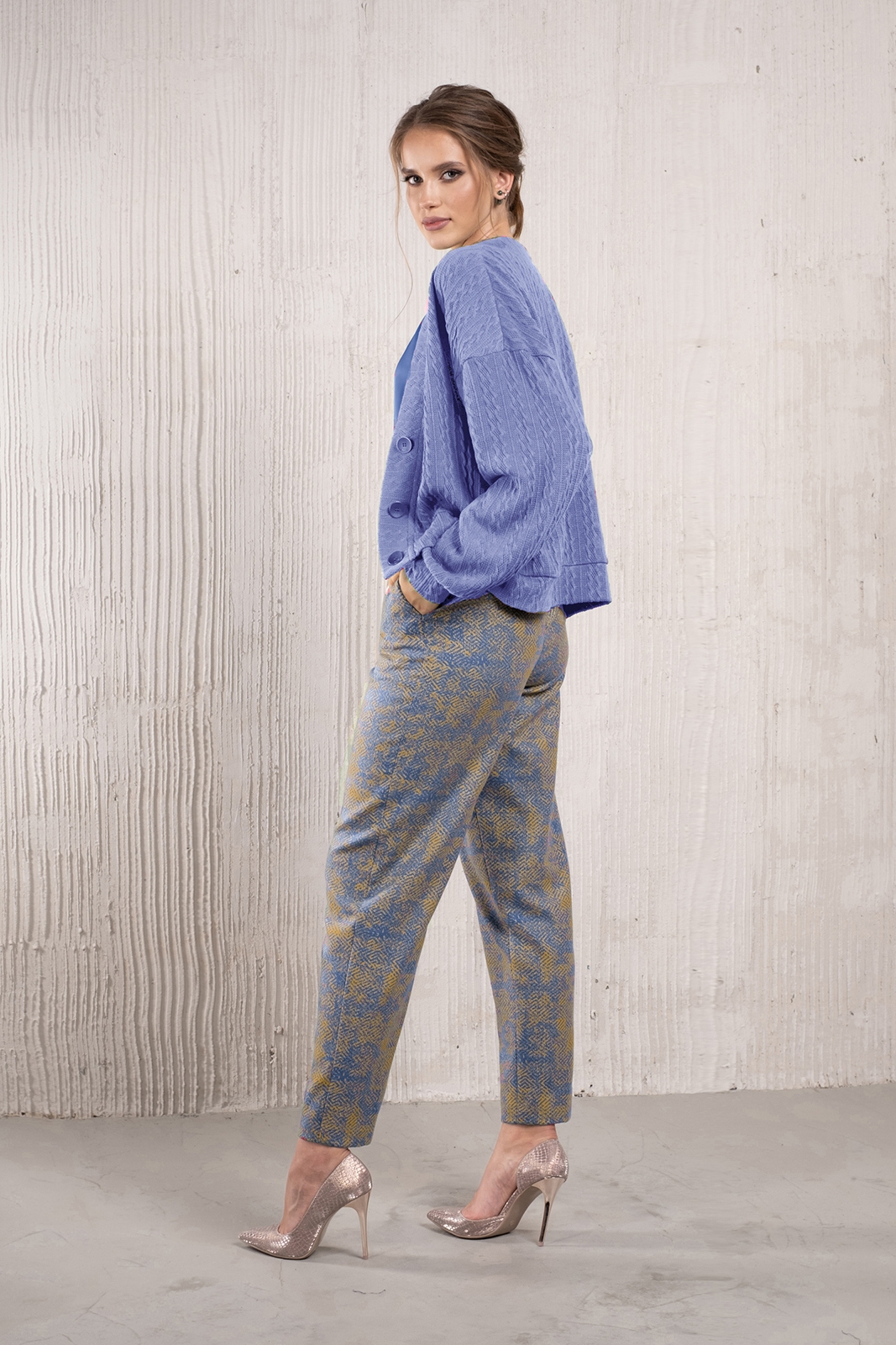 Брюки классического кроя, прямые. Ткань костюмно-плательная средней плотности, немного тянется, на ощупь приятная. Застежка на молнию спереди. В боковых швах удобные карманы. Длина брюк по боковому шву в 44-46-48 размерах 102 см, в 50-52-54 размерах 105 см.