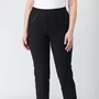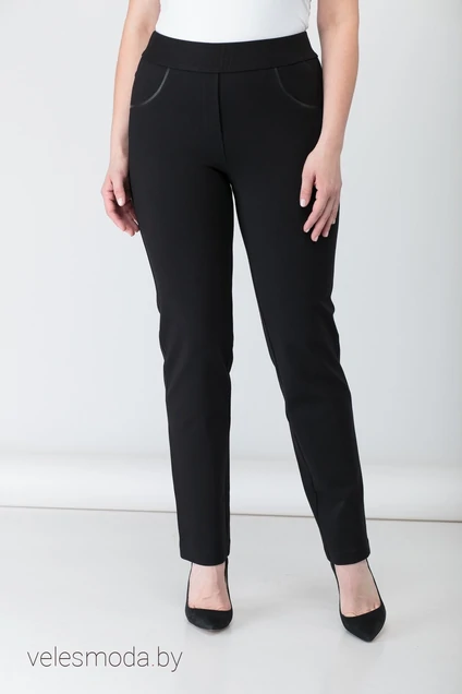 Брюки прилегающего силуэта. По линии талии притачной пояс на эластичной тесьме. На передней части брюк подрез с декоративными элементами. Брюки без застежки. Задняя часть брюк с накладными карманами. Карман с декоративным подрезом.