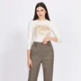 Элегантные женские брюки создадут стильный и утонченный образ в любой гардероб. Выполненные из качественной однотонной ткани с добавлением вискозы, они обеспечивают не только привлекательный внешний вид, но и комфорт при носке. Модель характеризуется стрелками на брюках, которые визуально вытягивают фигуру, делая силуэт более изящным. Брюки имеют частично притачной пояс, собранный на эластичную тесьму по спинке, что добавляет удобства и делает посадку идеальной. Спереди нашиты функциональные косые карманы, а также застёжка на молнию и петлю-пуговицу для надежной фиксации. Отделочные элементы, такие как пояски с пуговицами в тон на поясе, добавляют изысканности и подчеркивают продуманность каждой детали. На задней части расположены два кармана с листочками, украшающие дизайн и добавляющие практичности. Эти брюки станут идеальным выбором для создания элегантного образа на работу или для важного мероприятия.