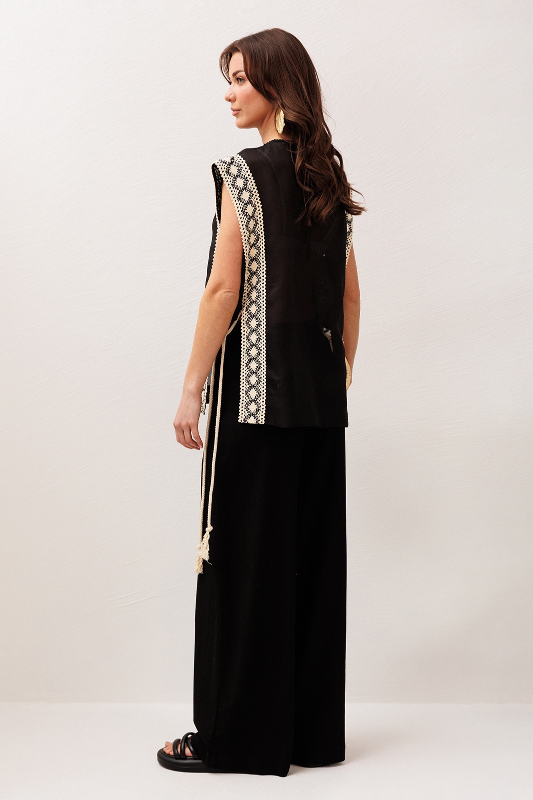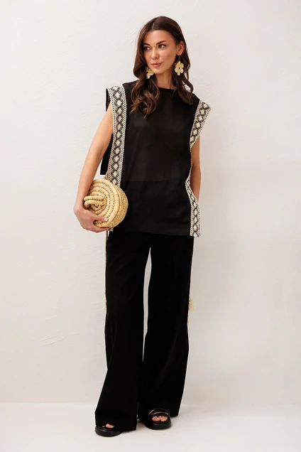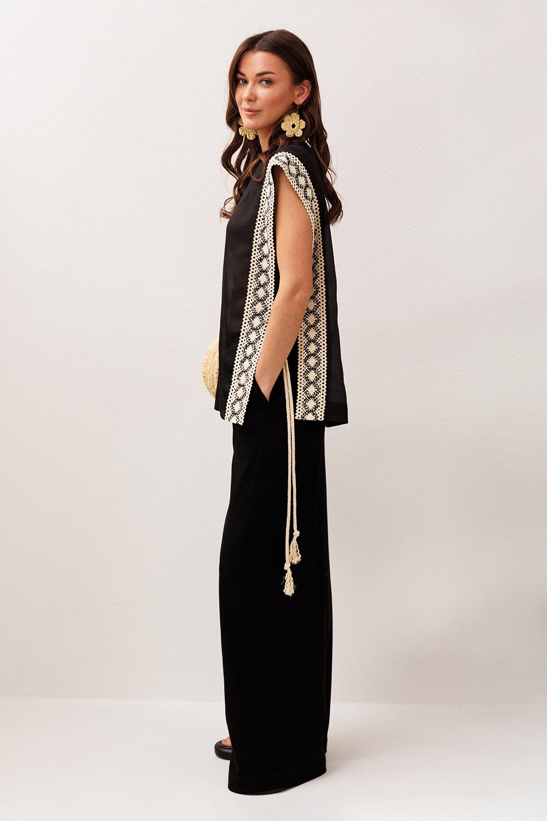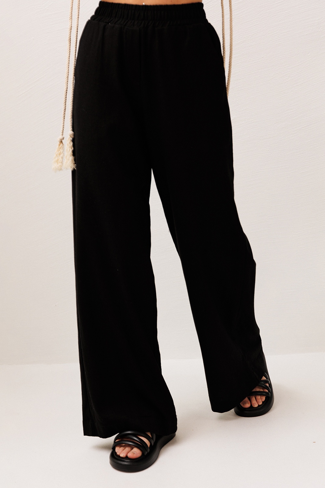 Брюки 3312 черный BUTER — стильное дополнение к вашему гардеробу. Коллекция бренда BUTER предлагает эти брюки, выполненные из сочетания льна и вискозы, что обеспечивает комфорт и лёгкость. Фасон брюк немного расширен к низу, что подчёркивает их современный стиль. Пояс на резинке и карманы в боковых швах добавляют практичности, а имитация застежки-гульфик придаёт оригинальность. Брюки идеально подходят для повседневного использования в тёплый сезон. Их универсальный черный цвет позволяет легко сочетать с различными топами и аксессуарами.