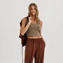 Брюки женские слегка зауженные книзу, с притачным поясом со шлевками, с застежкой на тесьму-молнию с гульфиком и откоском. Пояс застегивается на одну прорезную петлю и пуговицу. Передняя половинка брюк с 2-мя складками, застроченными сверху, с боковыми карманами. На задней половинке брюк – 2 талиевых вытачки.