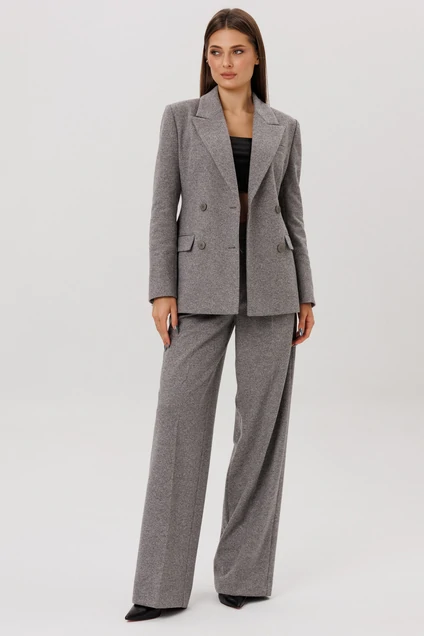 Элегантные женские брюки прямого силуэта, выполненные из качественной серой ткани с тонкой текстурой. Модель обладает превосходной посадкой, дополнена функциональными карманами, что делает их не только стильными, но и практичными. Длина брюк по боковому шву составляет 106-108 см, а по внутреннему шву — 83-86 см. Эти брюки идеально подойдут как для офиса, так и для более неформальных мероприятий, обеспечивая комфорт и уверенность в любой ситуации.