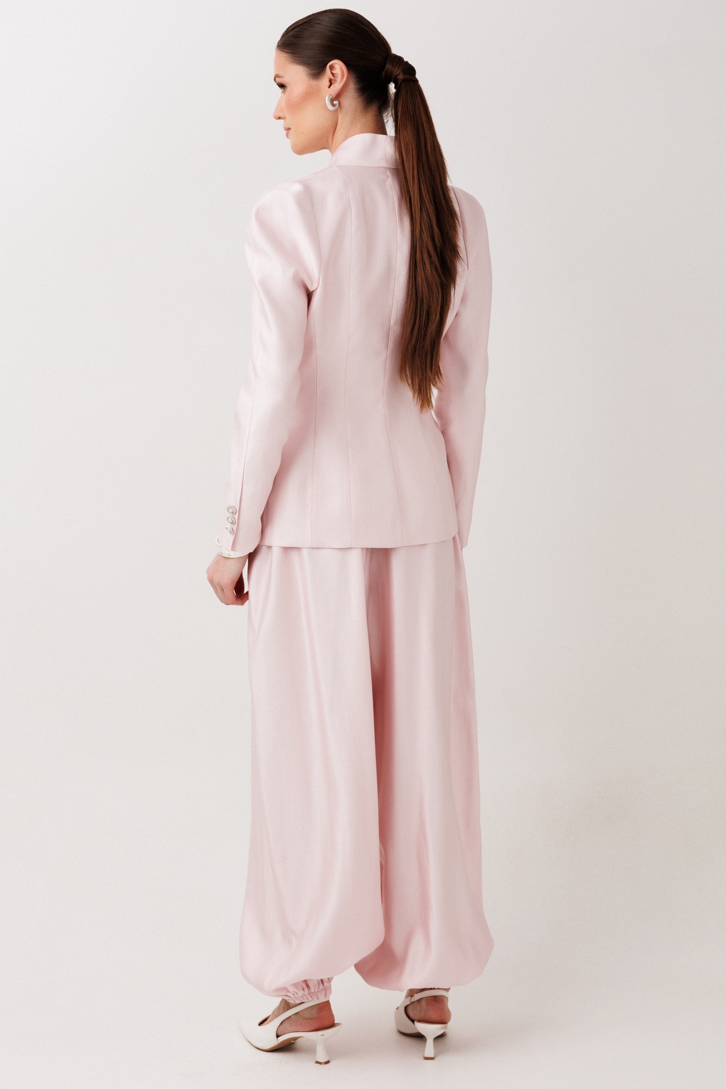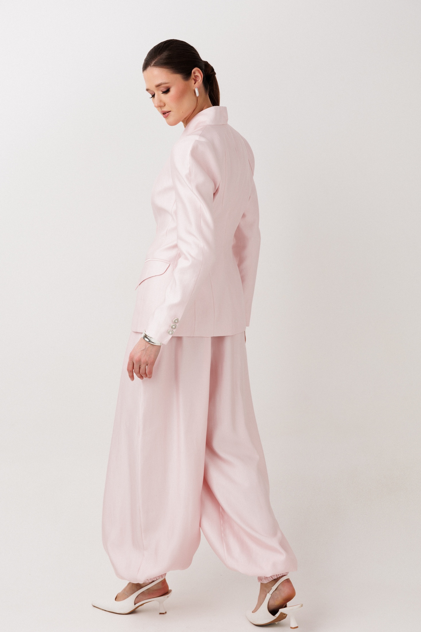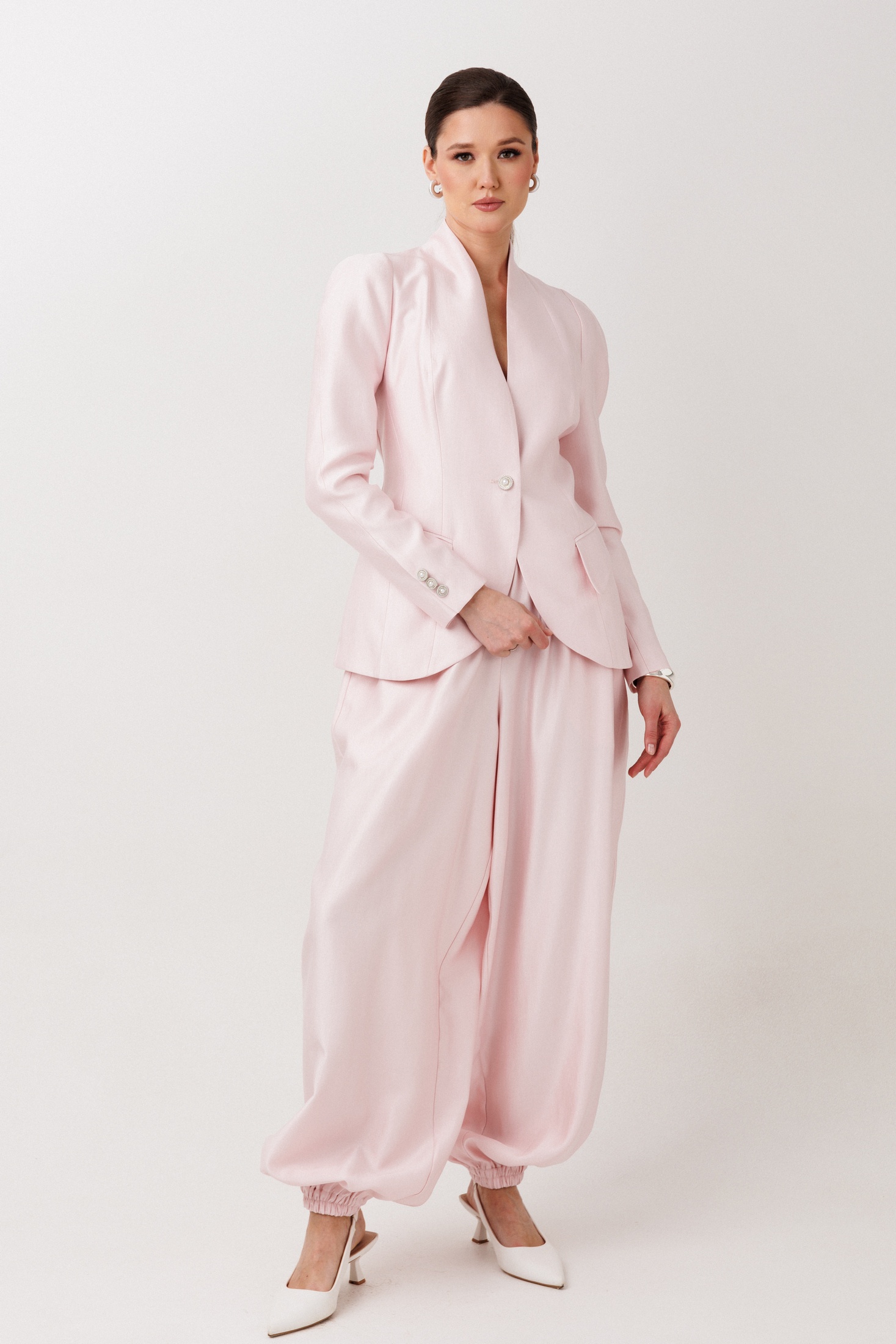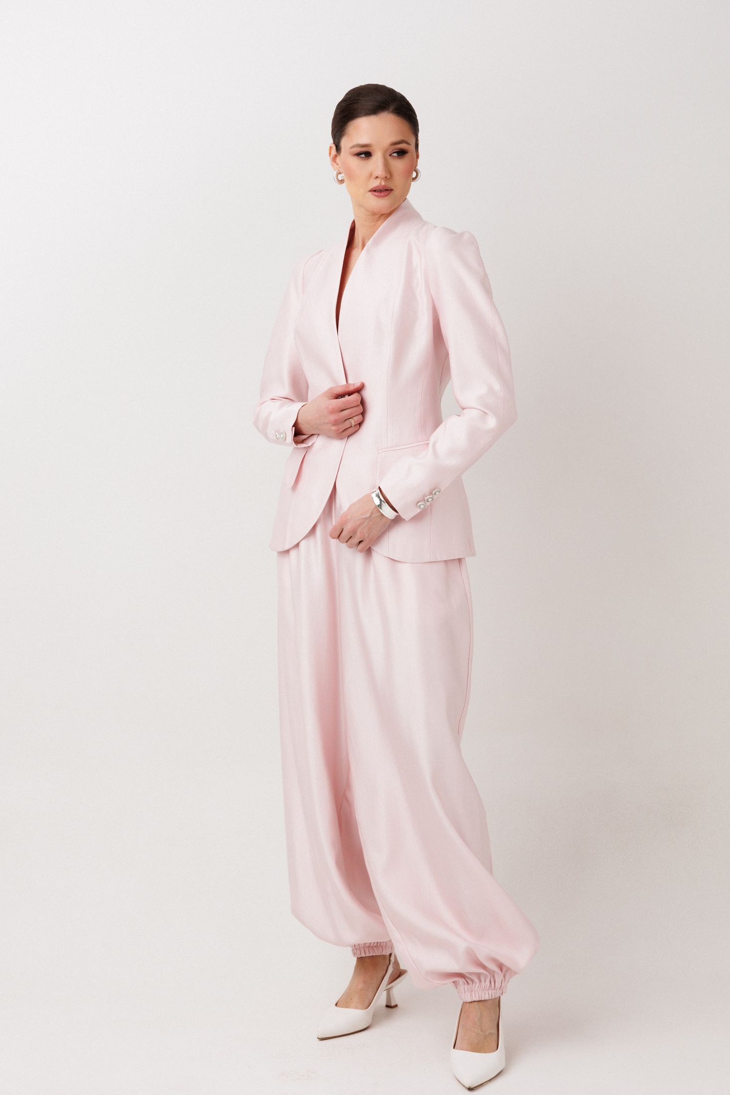 Брюки 1002 ERTANNO от коллекции бренда ERTANNO — это идеальное сочетание свободы, комфорта и современного стиля. Изготовленные из вискозы, полиамида и полиэстера, они предлагают мягкость и износостойкость. Модель «шаровары» мягко струится по фигуре, обеспечивая расслабленный стильный образ. Удобные карманы в боковых швах и цельнокроеный пояс с эластичной тесьмой гарантируют комфортную посадку. Эти брюки идеально подходят для повседневной носки и легко сочетаются как с топами, так и с жакетами. Цвет бледно-розовый, длина до щиколотки, оформлены манжетами по низу, что придаёт стильный объём. Носите их в любое время года, чтобы создать модный и непринуждённый образ. Параметры модели: рост-175см, 82-67-91