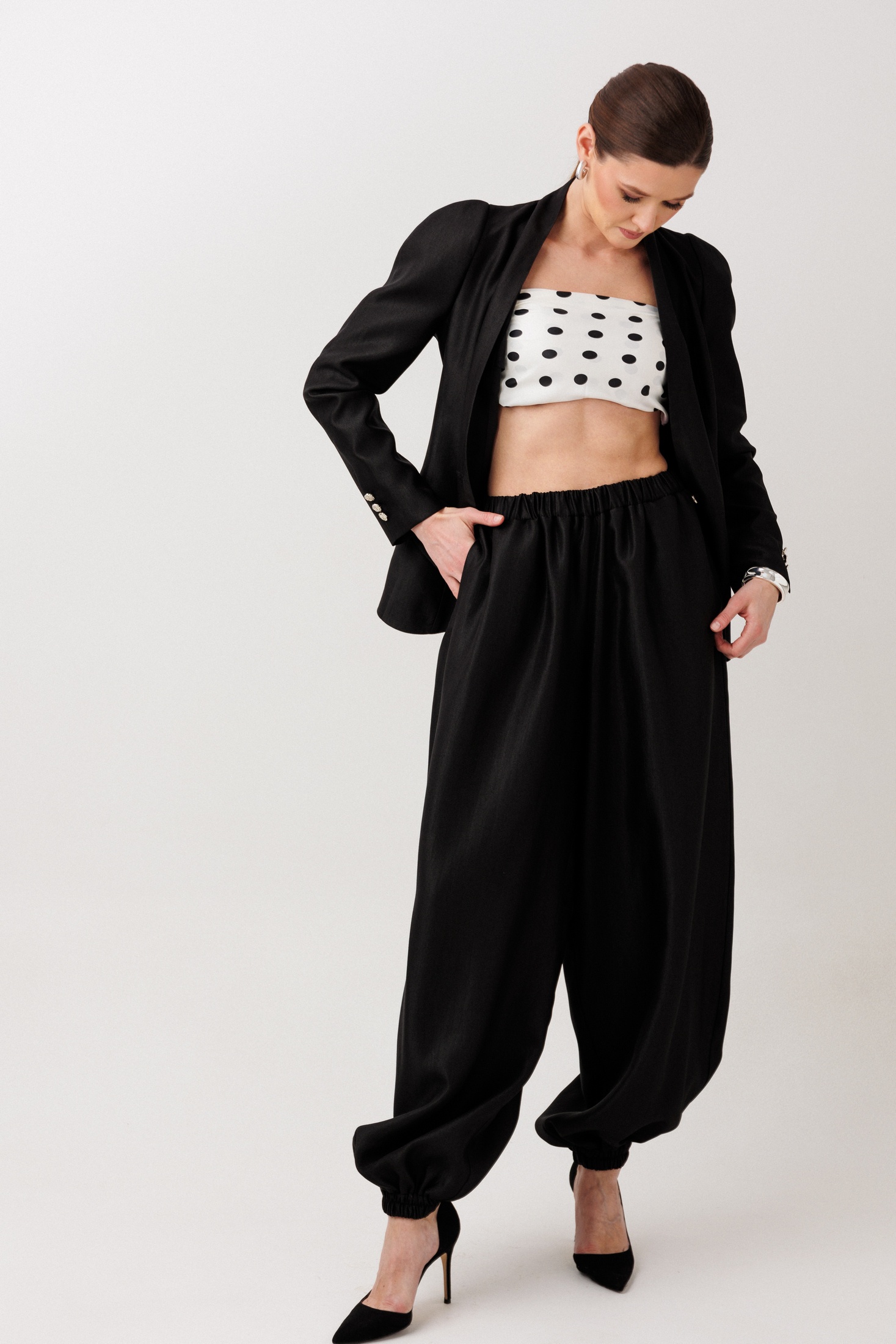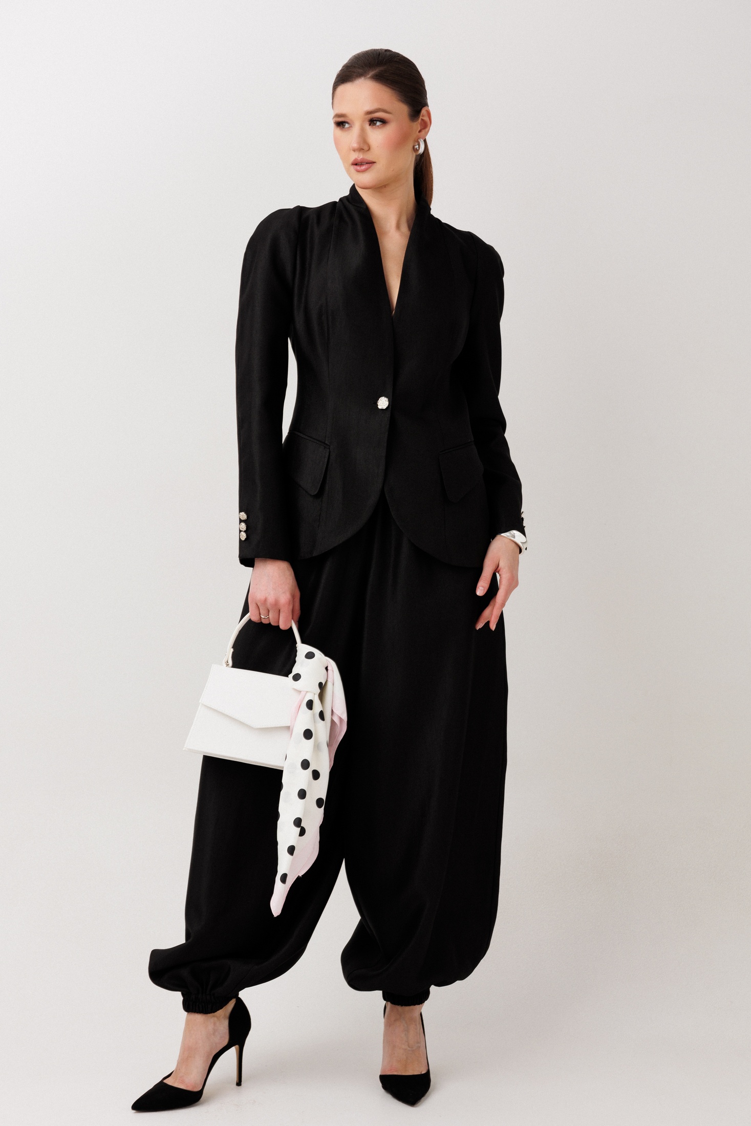 Брюки 1005 ERTANNO от коллекции бренда ERTANNO — это идеальное сочетание легкости и современного стиля. Брюки из вискозы с добавлением полиамида и полиэстера обеспечивают мягкость и комфорт. Модель с длиной до щиколотки и свободным фасоном позволяет чувствовать себя комфортно в любой ситуации. Цельнокроёный пояс с эластичной тесьмой подчеркивает линию талии. Особенности, такие как удобные карманы и манжета по низу, делают брюки идеальными для повседневной жизни. Черный цвет добавляет универсальности, позволяя комбинировать их с различными элементами гардероба. Тёплая модель подходит для осеннего сезона, подчеркивая ваш безупречный вкус и стиль. Параметры модели: рост-175см, 82-67-91