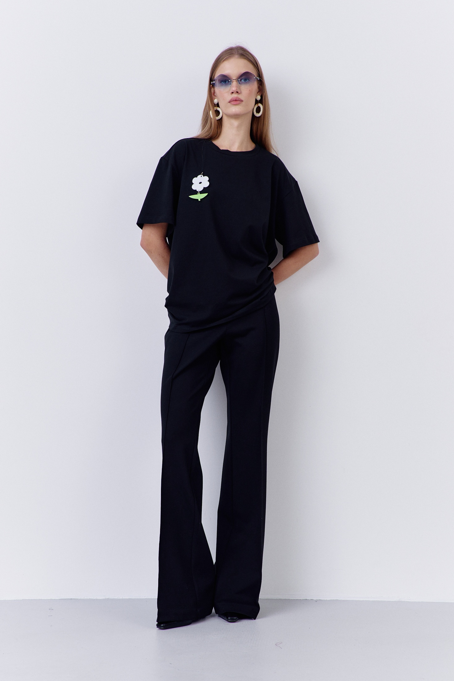 Брюки 2087 FLAIM от известного бренда предлагают утонченный стиль и комфорт. Коллекция бренда FLAIM выполнена из качественной костюмно-плательной ткани, содержащей 65% полиэстера, 32% вискозы и 3% эластана. Эти брюки-клеш в классическом черном цвете идеально подойдут для офисного или повседневного гардероба. Высокая посадка и пояс с застежкой на тесьму-молнию подчеркивают силуэт, добавляя элегантности. Брюки рассчитаны на осенне-весенний сезон, сочетая комфорт и стиль.
