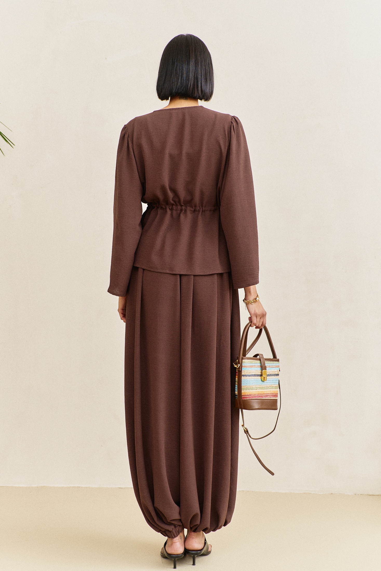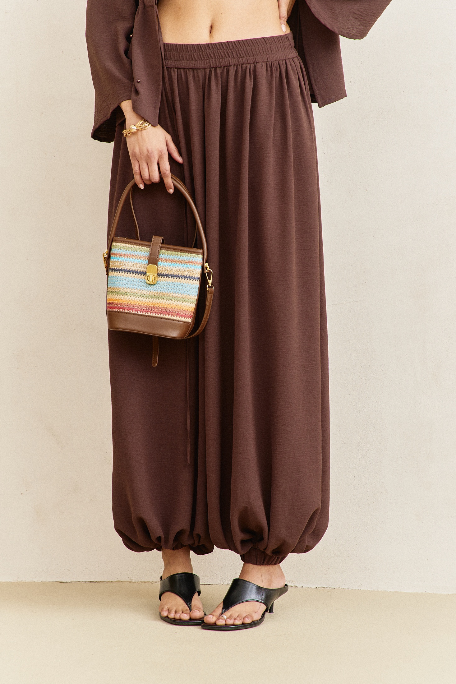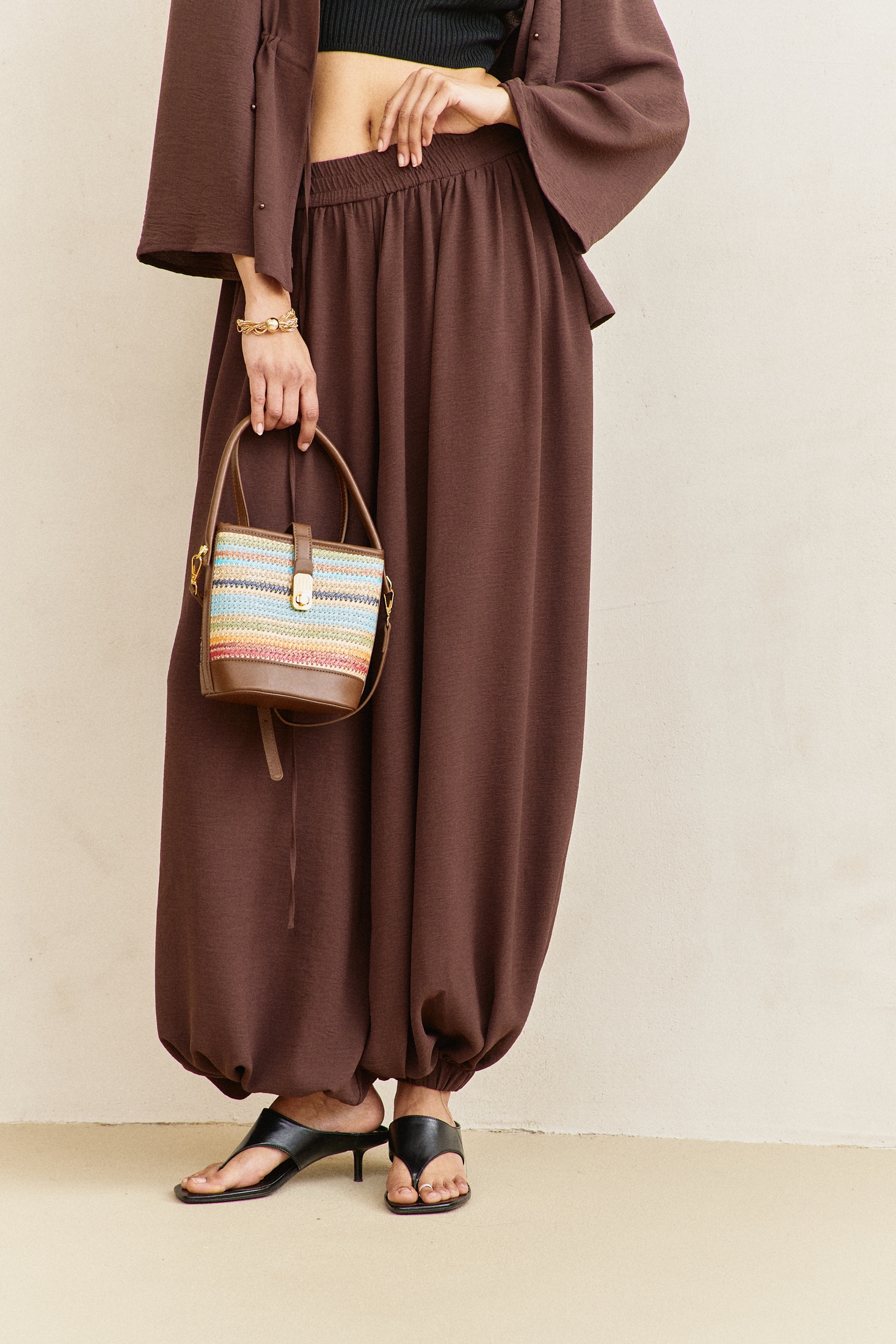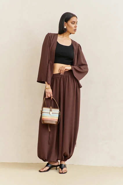 Брюки 2102 коричневый FLAIM — это стильное решение для вашего гардероба. Коллекция бренда FLAIM предлагает брюки свободного силуэта из костюмно-плательной ткани, которые обеспечивают комфорт в любое время года. Вискоза в составе материала обеспечивает мягкость и приятные ощущения на коже, а добавление полиэстера увеличивает износостойкость. Фасон аладинов и резинка на поясе создают свободный силуэт, идеальный для повседневной носки. Карманы в боковых швах добавляют функциональности. Брюки выполнены в насыщенном коричневом цвете, который легко сочетается с другими элементами гардероба.