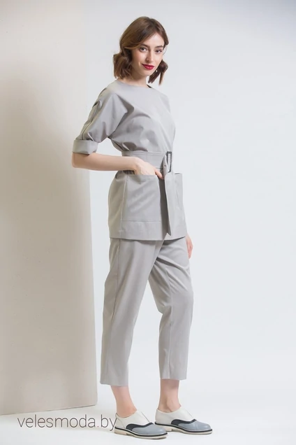 Кюлоты зауженные к низу, пояс на резинке. На передних частях брюк боковые карманы с отрезным бочком. С жакетом арт.535 брюки создают образ для деловой встречи или вечернего выхода.