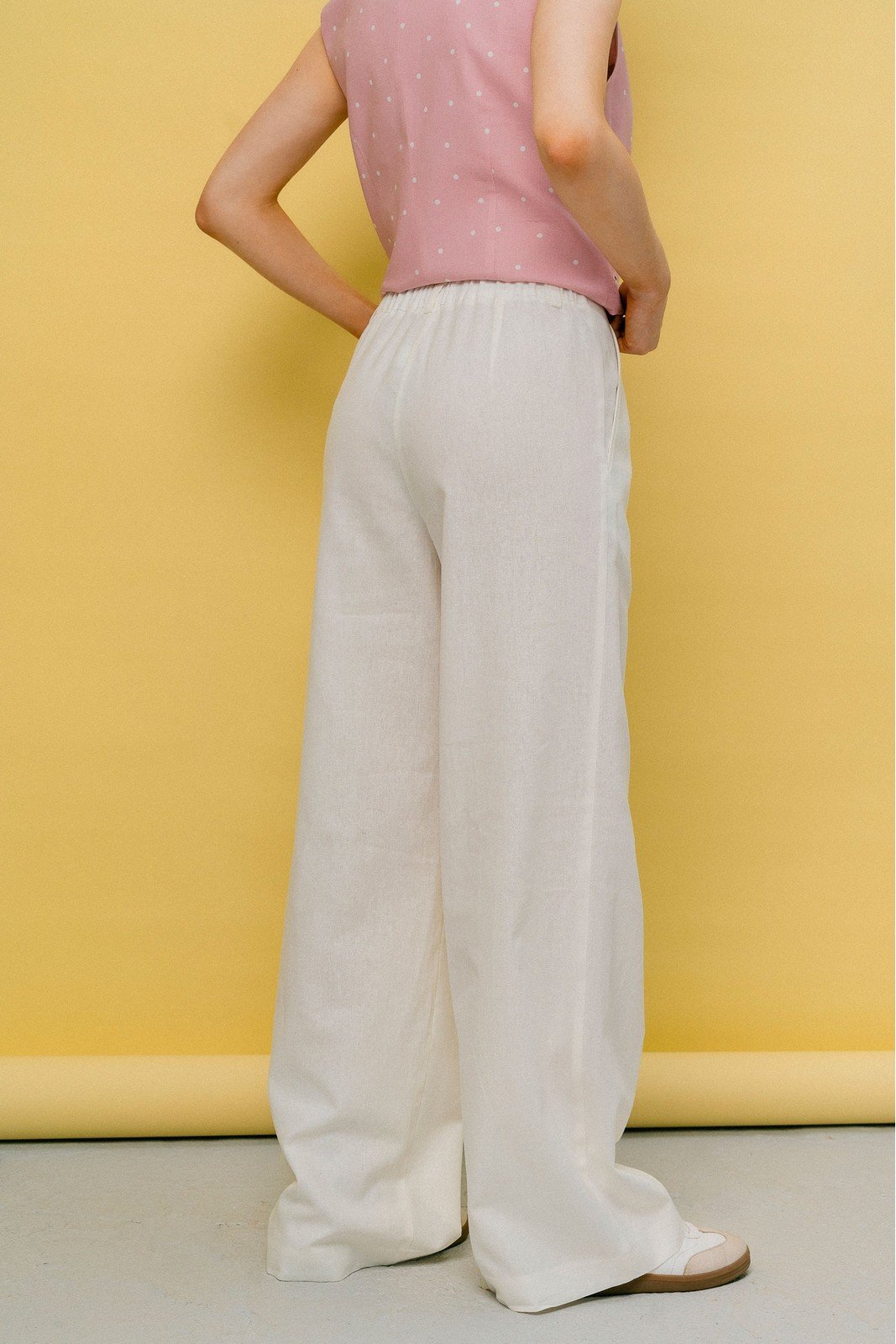 Молодежные брюки из однотонной льняной ткани, идеально подходящие для создания стильного и комфортного образа. Брюки имеют прямой силуэт и притачной пояс, который обеспечивает хорошую посадку. Наклонные карманы спереди добавляют функциональности и стильного акцента. Застежка "гульфик" по переду обеспечивает удобство в использовании, а эластичная тесьма по спинке пояса добавляет комфорта и позволяет брюкам адаптироваться к движениям. Длина брюк по боковому шву составляет 104 см, что делает их отличным выбором для различных случаев, от повседневных выходов до более формальных мероприятий.