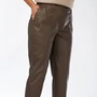 Брюки женские, изготовлены из хлопковой костюмной ткани под джинс. В брюках обработан пояс, застежка на тесьму-молнию и петлю-пуговицу. На задней части брюк кокетка и накладные карманы. На передней части боковые карманы.