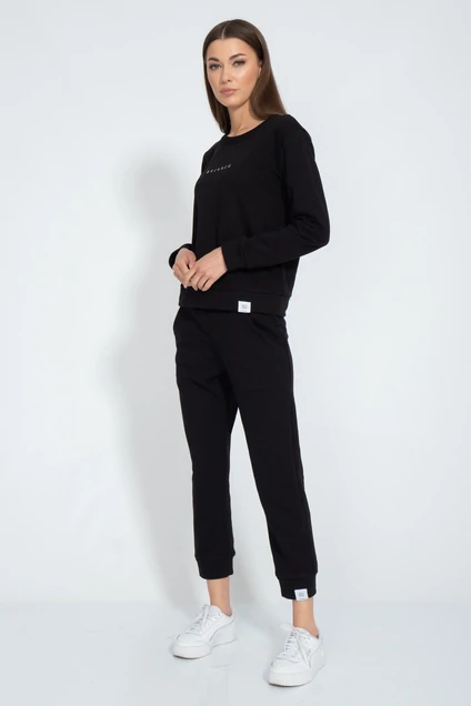 Брюки-джоггеры, укороченные, средней посадки, зауженные к низу с карманами в боковых швах. Обработка низа брюк манжета из основной ткани. Ткань футер 3-х ниточный с внутренним слоем на петельной основе, качество Пенье, плотность 435 г.м2. Максимально качественная ткань с софт текстурой.