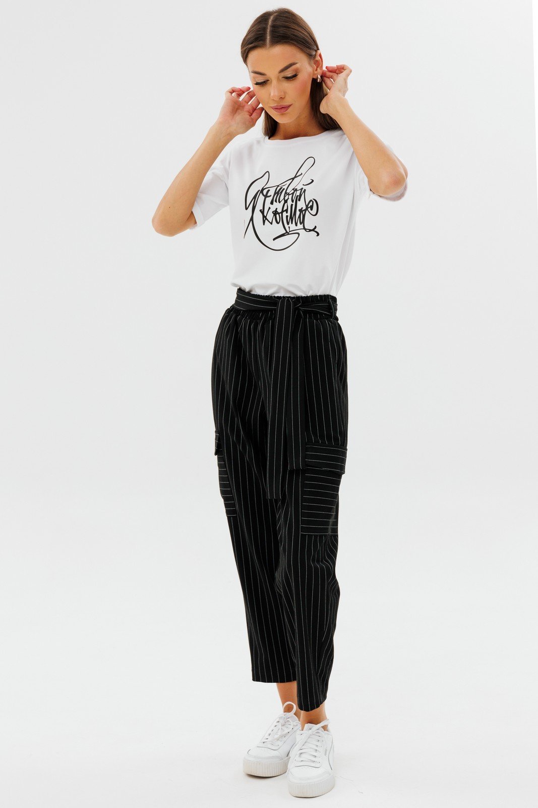 Эти укороченные брюки из костюмной ткани станут стильным и практичным дополнением вашего гардероба. Модель оснащена боковыми накладными карманами, которые добавляют функциональности и современного акцента. Поясной ремень из основной ткани обеспечивает идеальную посадку и комфорт в течение всего дня. Эти брюки прекрасно сочетаются как с деловыми, так и с повседневными образами, подчеркивая вашу элегантность и уверенность.