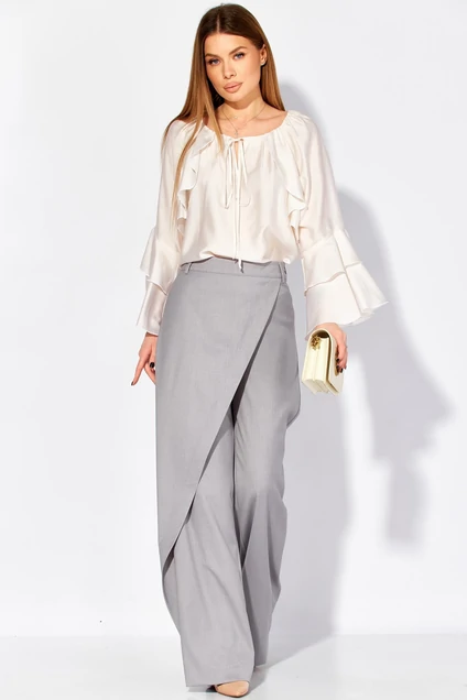 Брюки 024 серый LAIKONY — стильное дополнение к вашему гардеробу. Коллекция бренда LAIKONY предлагает модель из полиэстера, вискозы и спандекса, которая обеспечивает комфорт и стиль. Брюки имеют элегантный запах и прямой крой, что подчеркивает их универсальность. Пояс-кокетка с эластичной вставкой гарантирует отличную посадку и комфорт в течение дня. Потайная молния на боковом шве и петля-пуговица добавляют удобство. Серый оттенок и универсальный стиль делают их идеальными для офиса и вечерних выходов. Длина брюк по боковому шву составляет 111 см, что создает элегантный силуэт. Шлёвки на поясе позволяют легко добавить ремень для завершения образа.