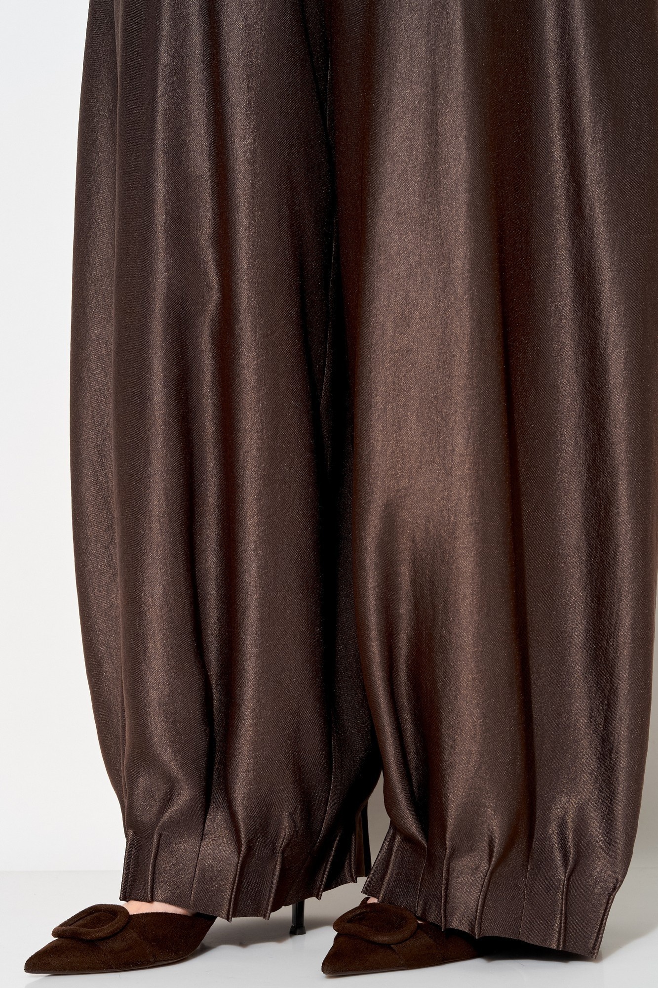 Брюки 834-2 шоколадный LAIKONY представляют собой уникальное сочетание стиля и комфорта. Коллекция бренда LAIKONY предлагает брюки-алладины из вискозы, полиакрила и полиэстера, которые подчеркивают фигуру в верхней части, плавно расширяясь к низу. Эти брюки с высокой посадкой и эластичной тесьмой по спинке дарят удобство и модный вид. Застежка на тесьму-молнию с пуговицей делает их практичными, а фигурные карманы в боковых швах добавляют изюминку. Защипы-складки придают изделию легкость и воздушность, создавая свободный силуэт. Шоколадный цвет и длина брюк по боковому шву 103-104 см делают их идеальными для межсезонья и городских прогулок, придавая вашему образу выразительность.