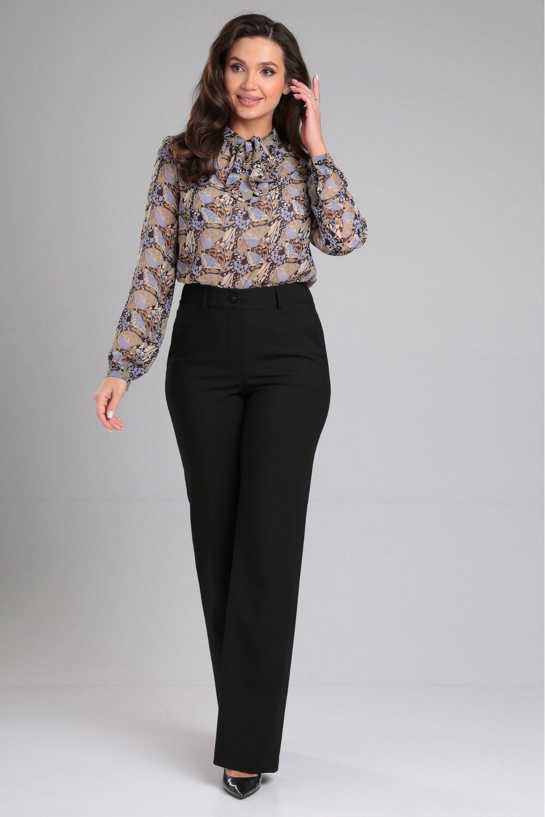Элегантные прямые брюки черного цвета — идеальный выбор для создания рафинированного образа. Модель выполнена с притачным поясом, которые декорирован шлевками, что добавляет функциональности и стиля. Застёжка на молнию, обтяжную пуговицу и петлю обеспечивает идеальную посадку. Брюки дополнены функциональными боковыми карманами, которые удобно расположены по переду изделия. Эта модель идеально подойдет для офиса или важного мероприятия, легко сочетается с блузами и рубашками.