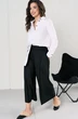 Брюки на поясе с резинкой. Передние половинки с наклонными карманами к боковым швам и складками от пояса.