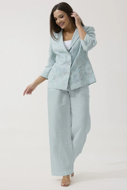 Брюки будут идеально смотреться с нашими жакетами 1076 и 1078 или рубашками 1079 и 1080 (на фото), также брюки можно купить в составе костюмов 3047и 3052. Составят незаменимую часть вашего базового весенне-летнего гардероба.