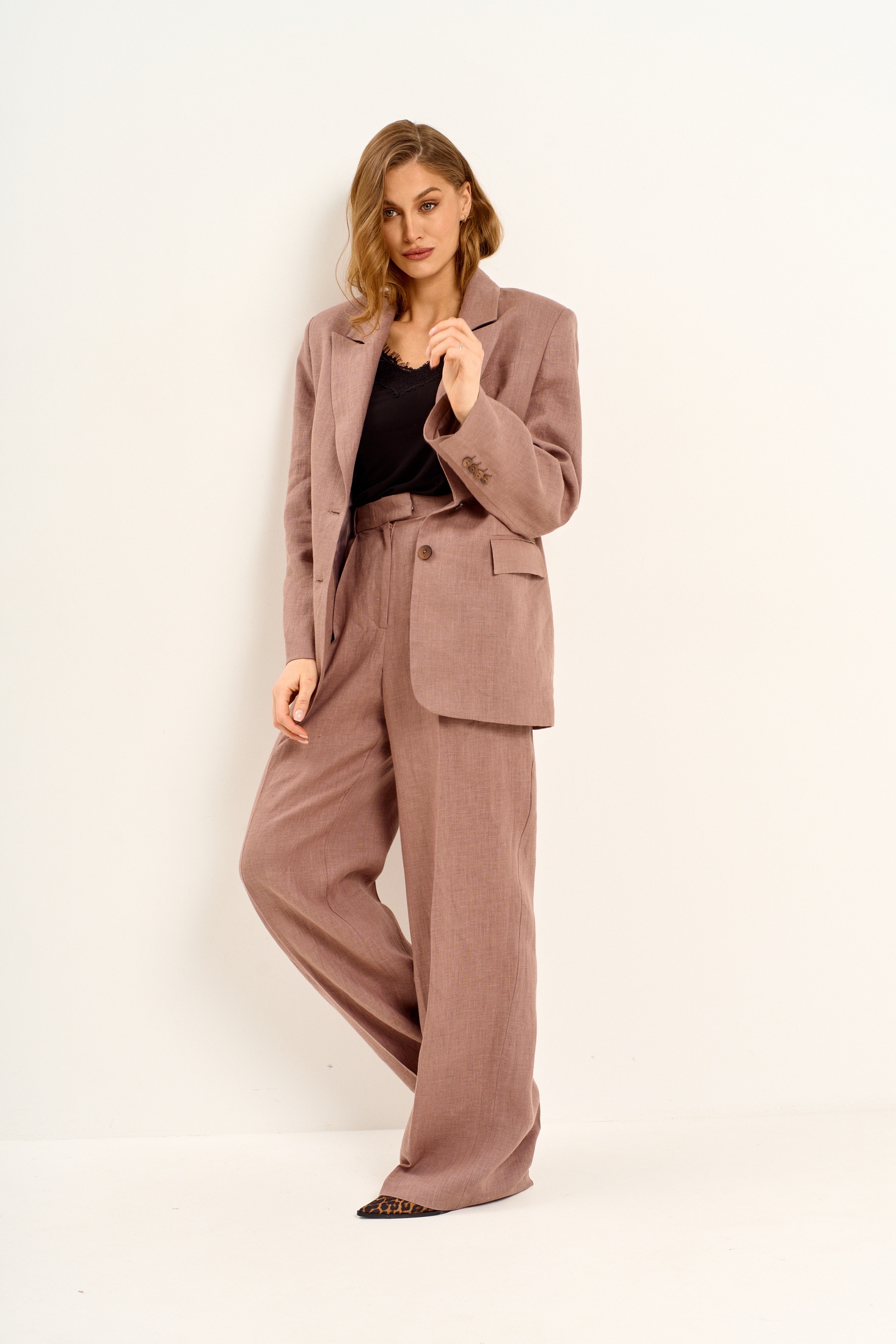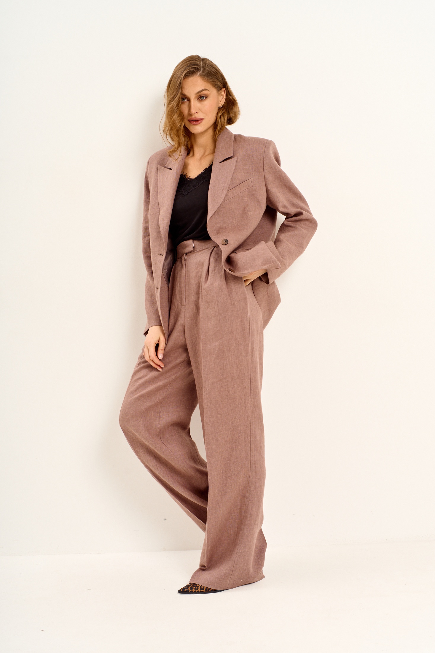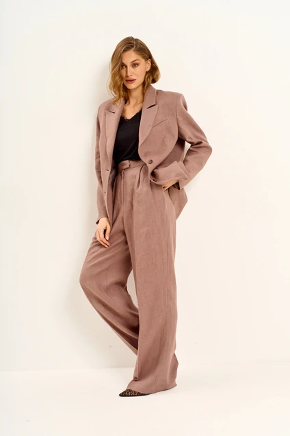Брюки 1036 коричневый Mar.s design. Эти женские брюки свободного кроя с расширением к низу станут стильным элементом вашего гардероба. Коллекция бренда Mar.s design предлагает модель из сочетания вискозы и льна, обеспечивающих комфорт и практичность в повседневной носке. Карманы в швах, застежка на молнию и пуговицу, а также пояс с корсажной тесьмой и шлевками подчеркивают функциональность и стильный дизайн. Впереди заложены складки, добавляющие изысканности, а заутюженные канты создают акцент на длину ноги. Коричневый цвет брюк идеально подойдет для весенне-осеннего сезона и станет актуальным для офисного облика или вечернего выхода.