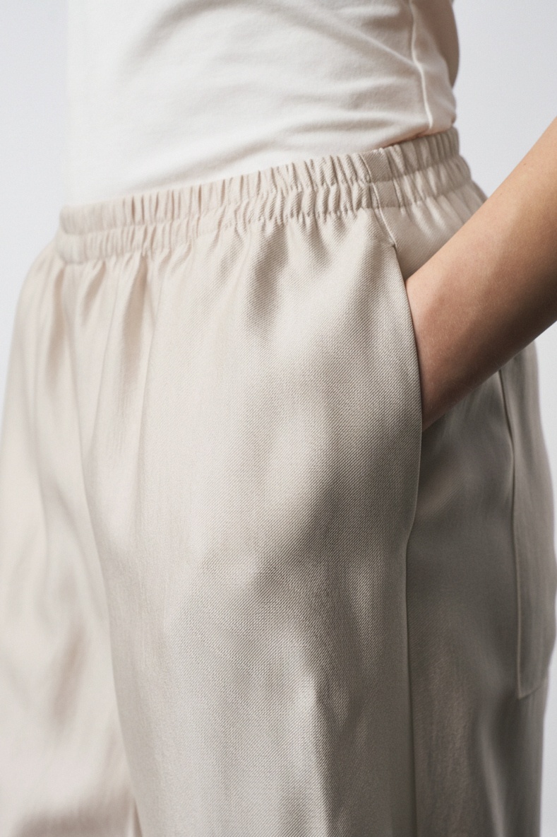 Брюки 1313 жемчуг milmil — стильное дополнение к вашему гардеробу. Коллекция бренда milmil предлагает эти свободные брюки с элегантными складками на коленях и практичными боковыми карманами. Изготовленные из вискозы с добавлением полиамида и спандекса, эти брюки обеспечивают комфорт и долговечность. Эластичная резинка с регулятором ширины по нижнему краю добавляет функциональности и позволяет адаптировать посадку под нужный образ. Подходит для повседневного носки в весенне-летний сезон. Брюки выполнены в универсальном жемчужном цвете, что делает их идеальными для любых сочетаний, будь то офисный стиль или неформальная встреча.