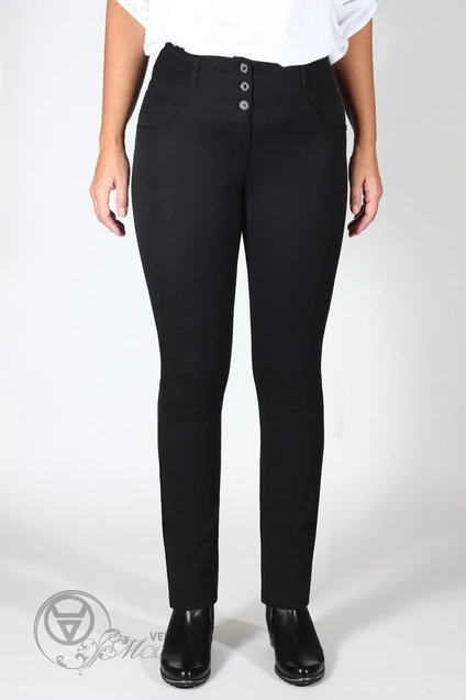 Брюки осенне-зимнего ассортимента на молнии, узкие по бёдрам и ногам. Пояс застёгивается на 3 пуговицы, ширина 9см. Посадка : высокая.