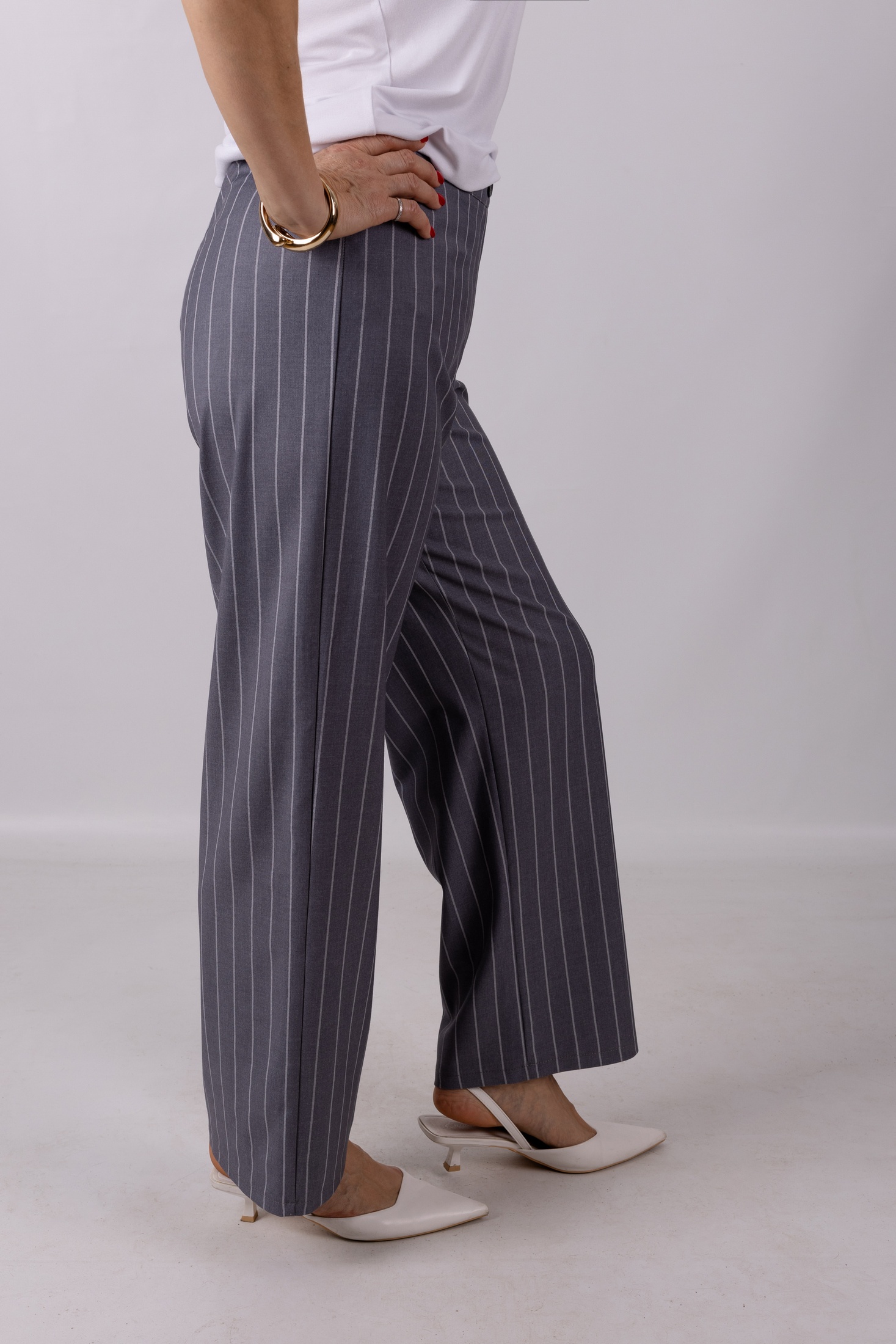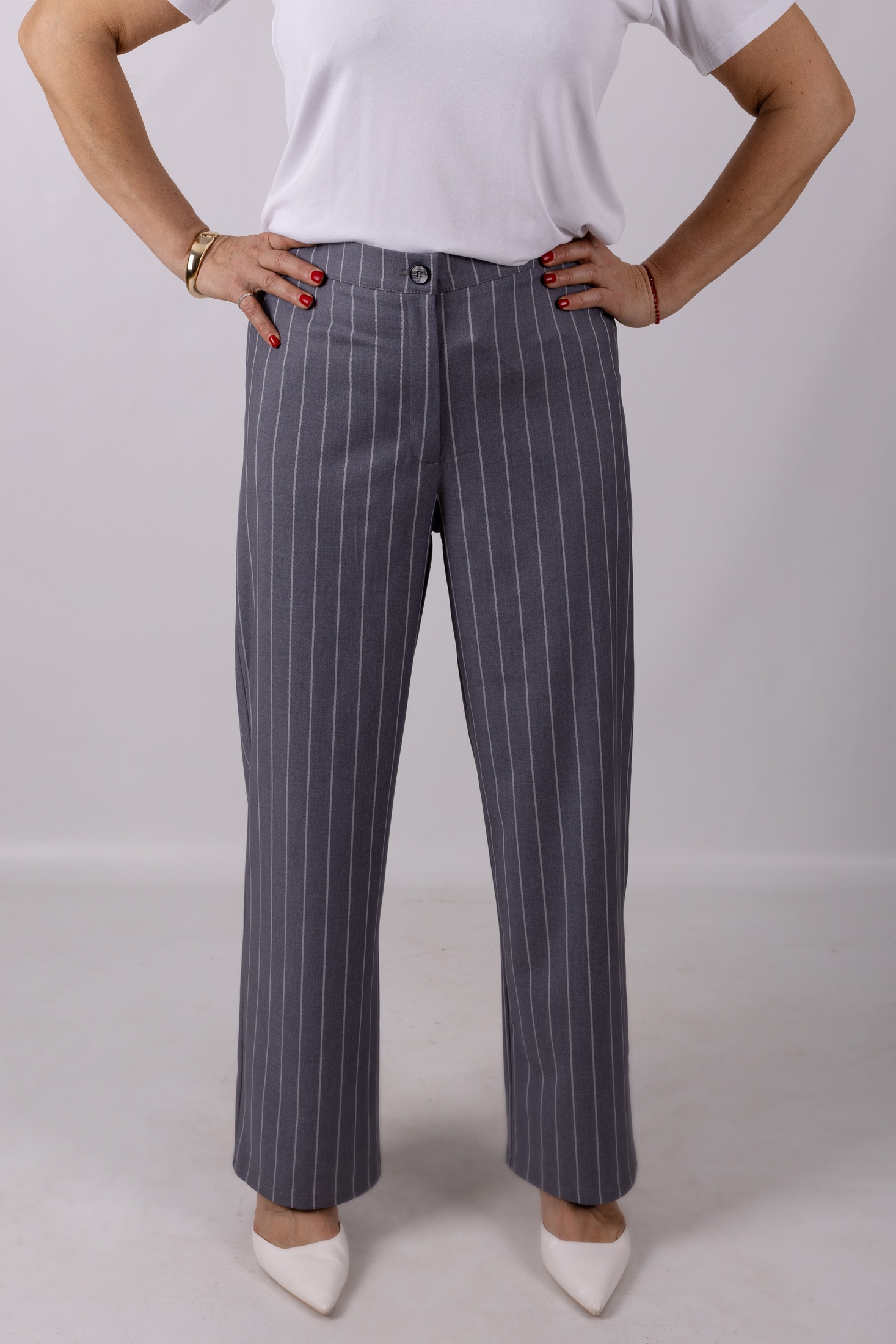 Брюки 1213 Mita Fashion — ваш новый идеал для элегантного и одновременно повседневного наряда. Коллекция бренда Mita Fashion предлагает брюки из гладкой вставки полиэстера, вискозы и спандекса, что обеспечивает комфорт и свободу движений. Прямой фасон и длина изделия 102 см делают их подходящими для офисного стиля и повседневного использования. Пояс на резинке и застёжка-молния добавляют удобства, позволяя легко адаптировать брюки к вашей фигуре. Классическая полоска и основа в сером цвете делают брюки универсальными для любого времени года. Отличный выбор для офисного гардероба или деловых встреч.