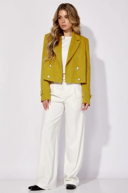 Брюки женские широкие по низу классического прямого силуэта на притачном поясе, застегивающиеся на тесьму-молнию по гульфику. Спереди обработаны боковые наклонные карманы и небольшая складка, переходящая в заутюженную стрелку. Сзади обработаны не функциональные прорезные карманы с листачками.